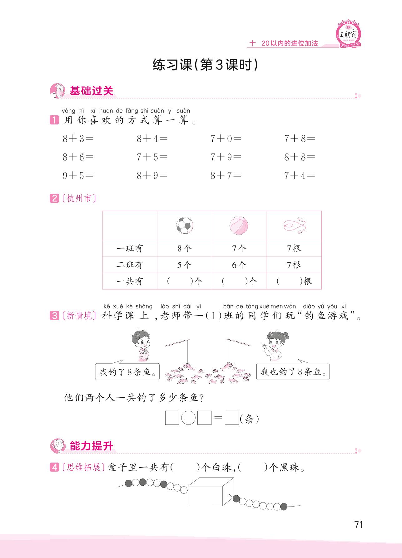 2023上册一年级数学苏教版 十 20以内的进位加法——练习课(第3课时)