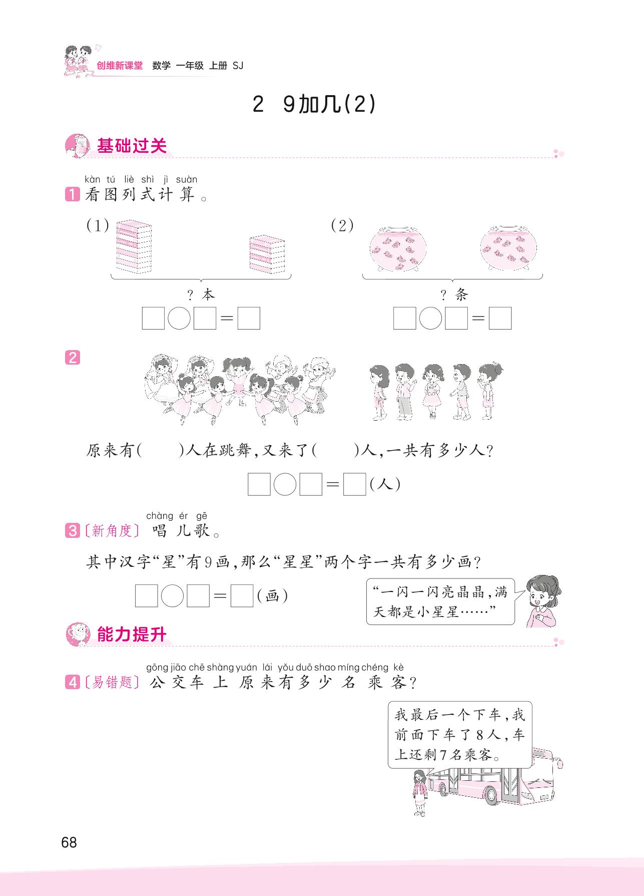 2023上册一年级数学苏教版 十 20以内的进位加法——2 9加几(2)