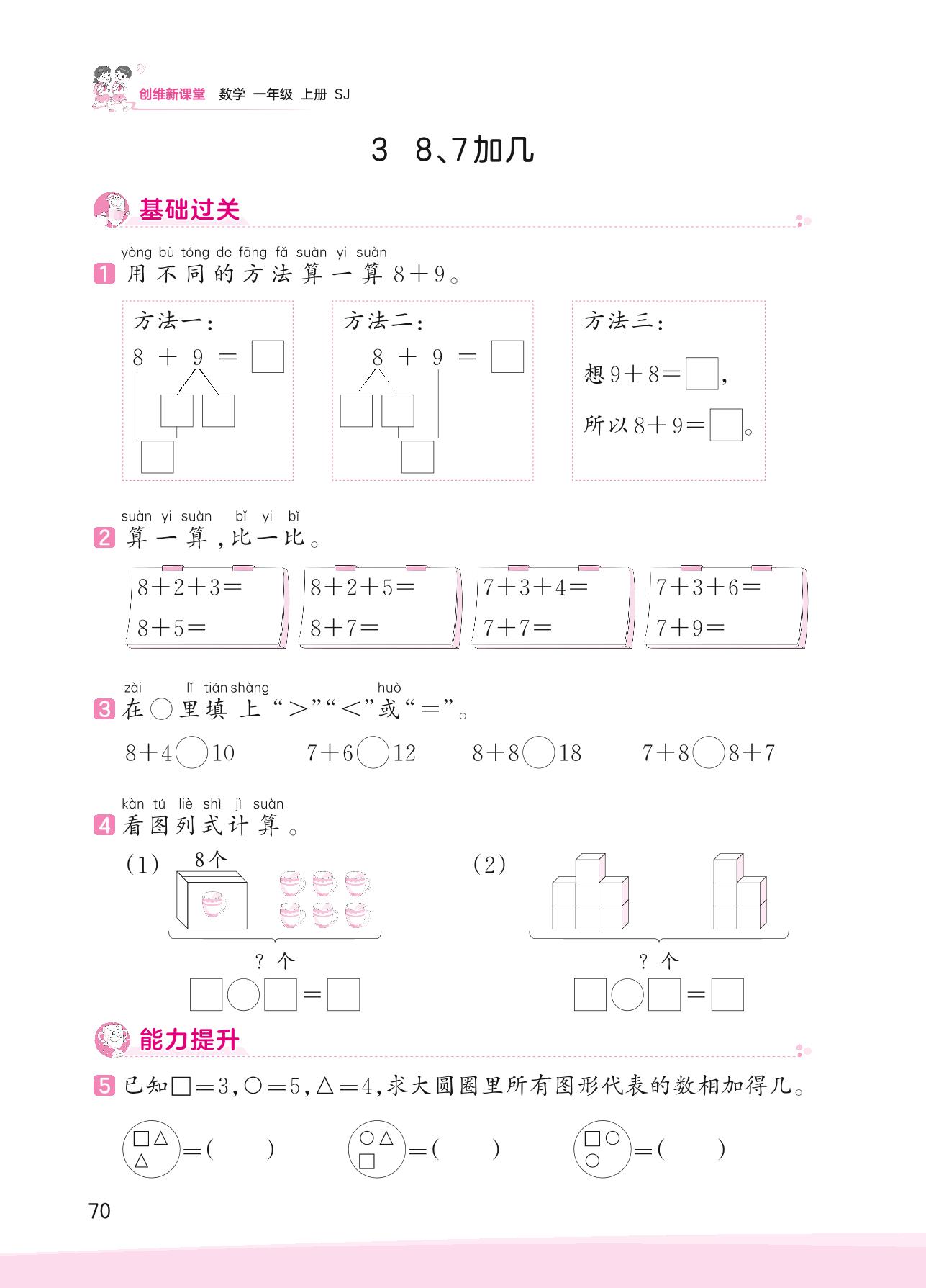 2023上册一年级数学苏教版 十 20以内的进位加法——3 8、7加几