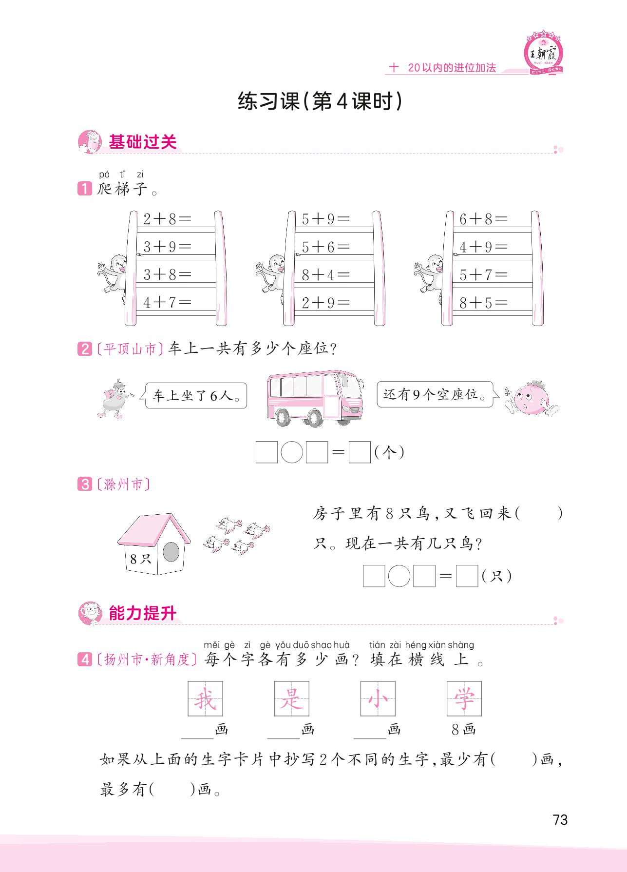 2023上册一年级数学苏教版 十 20以内的进位加法——练习课(第4课时)