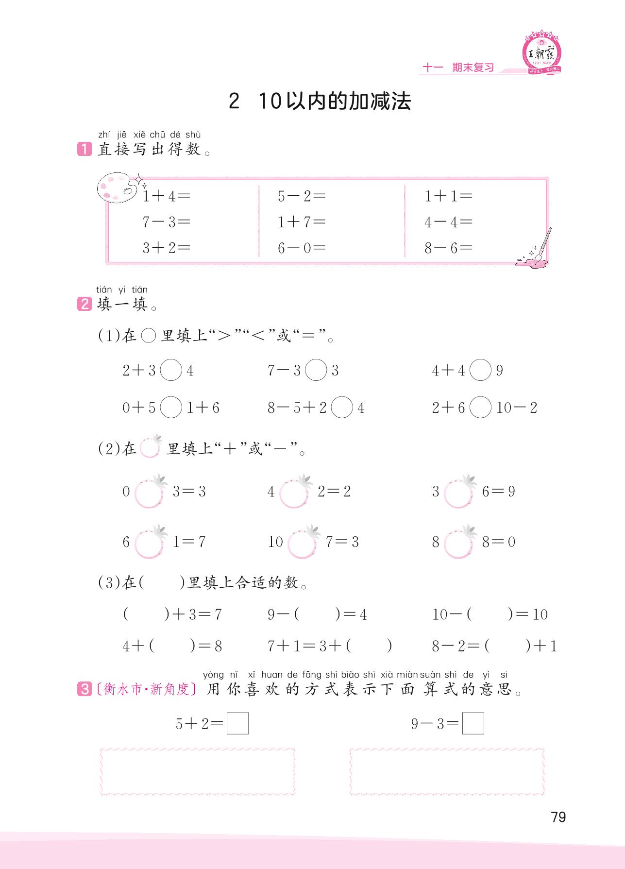 2023上册一年级数学苏教版 十一 期末复习——2 10以内的加减法