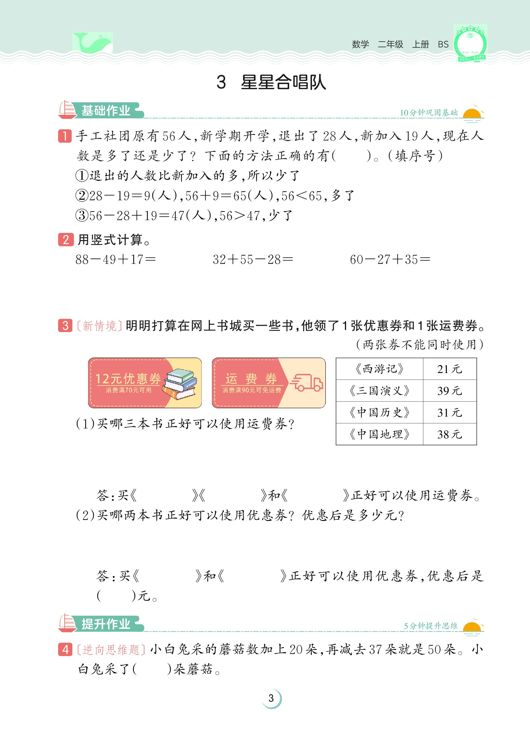2023上册二年级数学北师版 第一单元 加与减——3 星星合唱队
