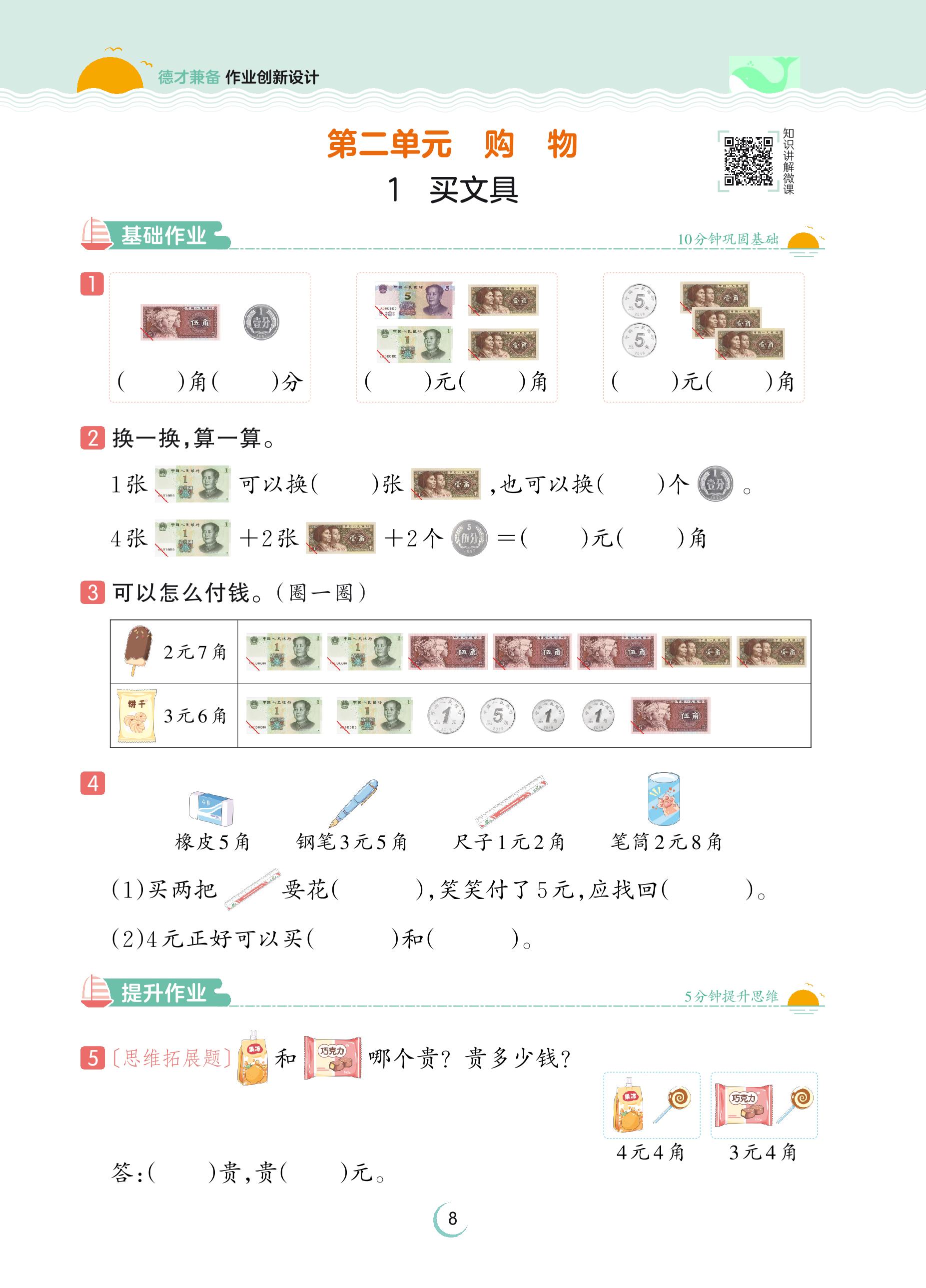 2023上册二年级数学北师版 第二单元 购物——1 买文具