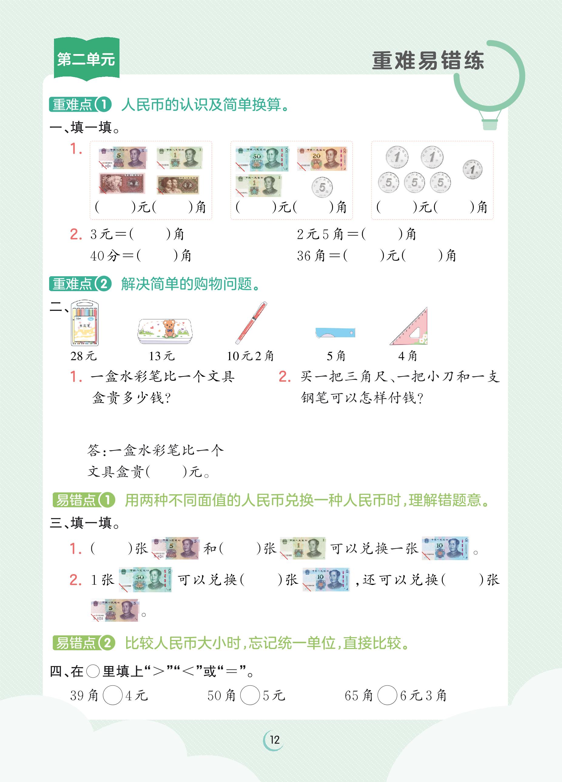 2023上册二年级数学北师版 第二单元重难易错练