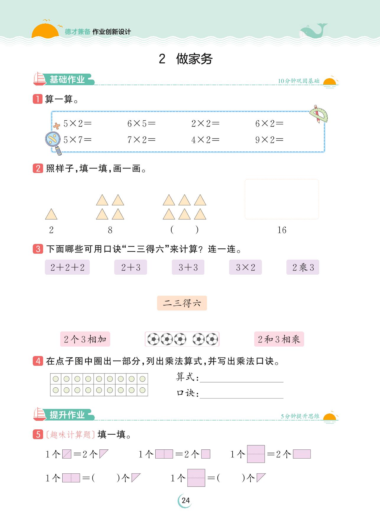 2023上册二年级数学北师版 第五单元 2~5的乘法口诀——2 做家务