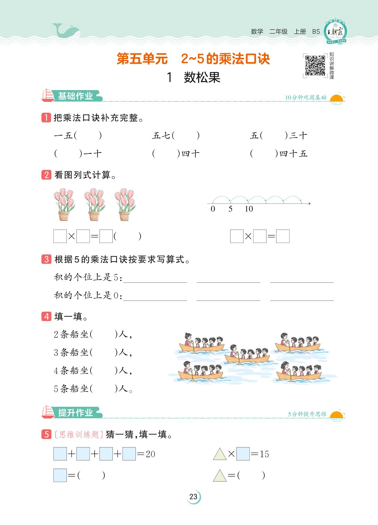 2023上册二年级数学北师版 第五单元 2~5的乘法口诀——1 数松果