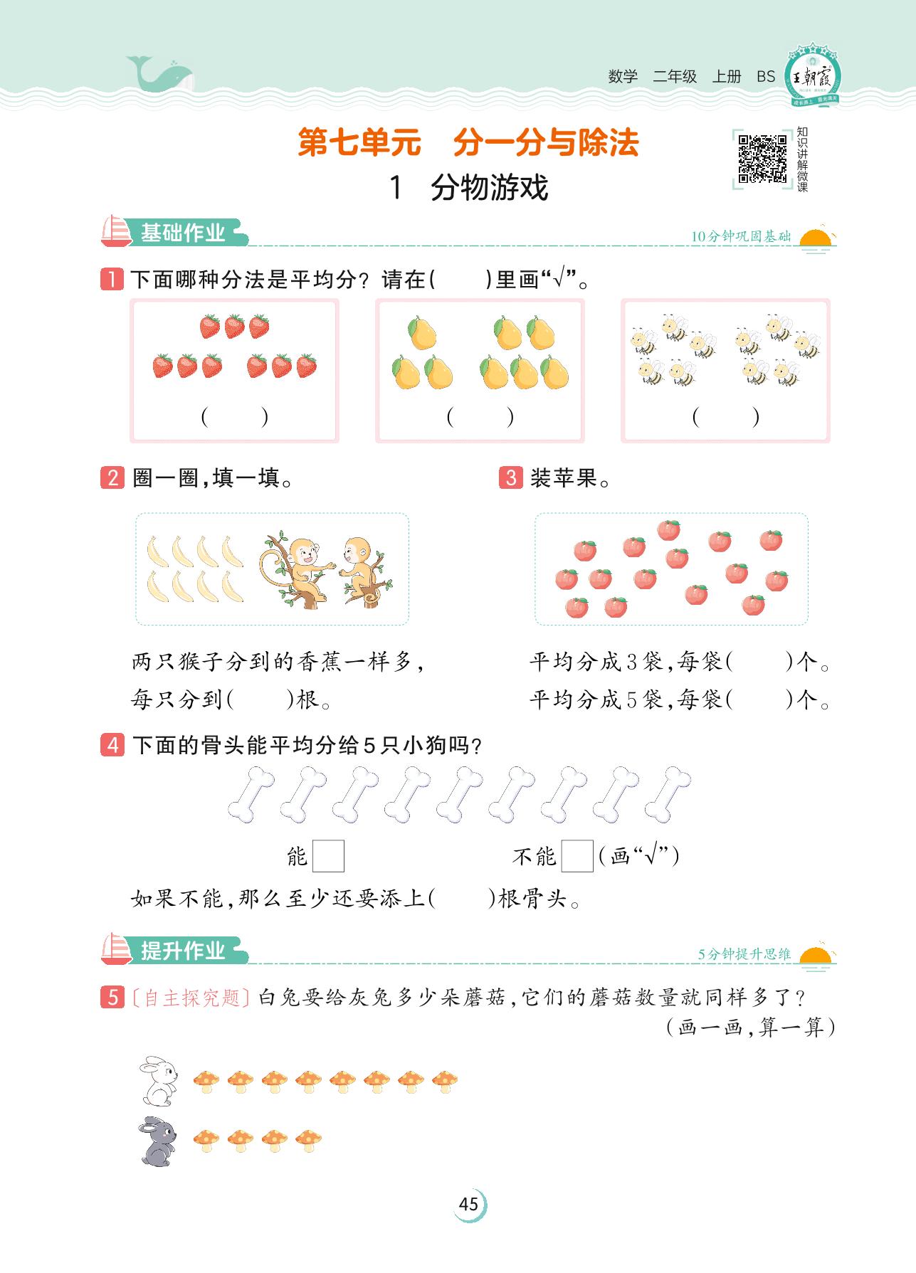 2023上册二年级数学北师版 第七单元 分一分与除法——1 分物游戏
