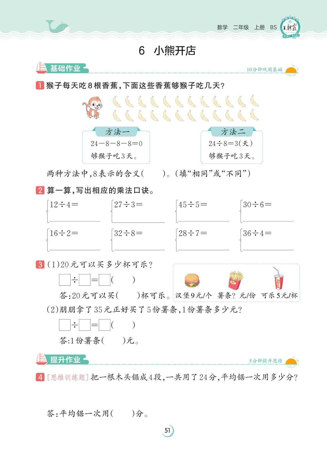 2023上册二年级数学北师版 第七单元 分一分与除法——6 小熊开店
