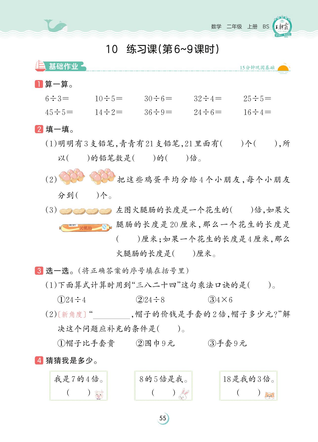 2023上册二年级数学北师版 第七单元 分一分与除法——10 练习课(第6~9课时)