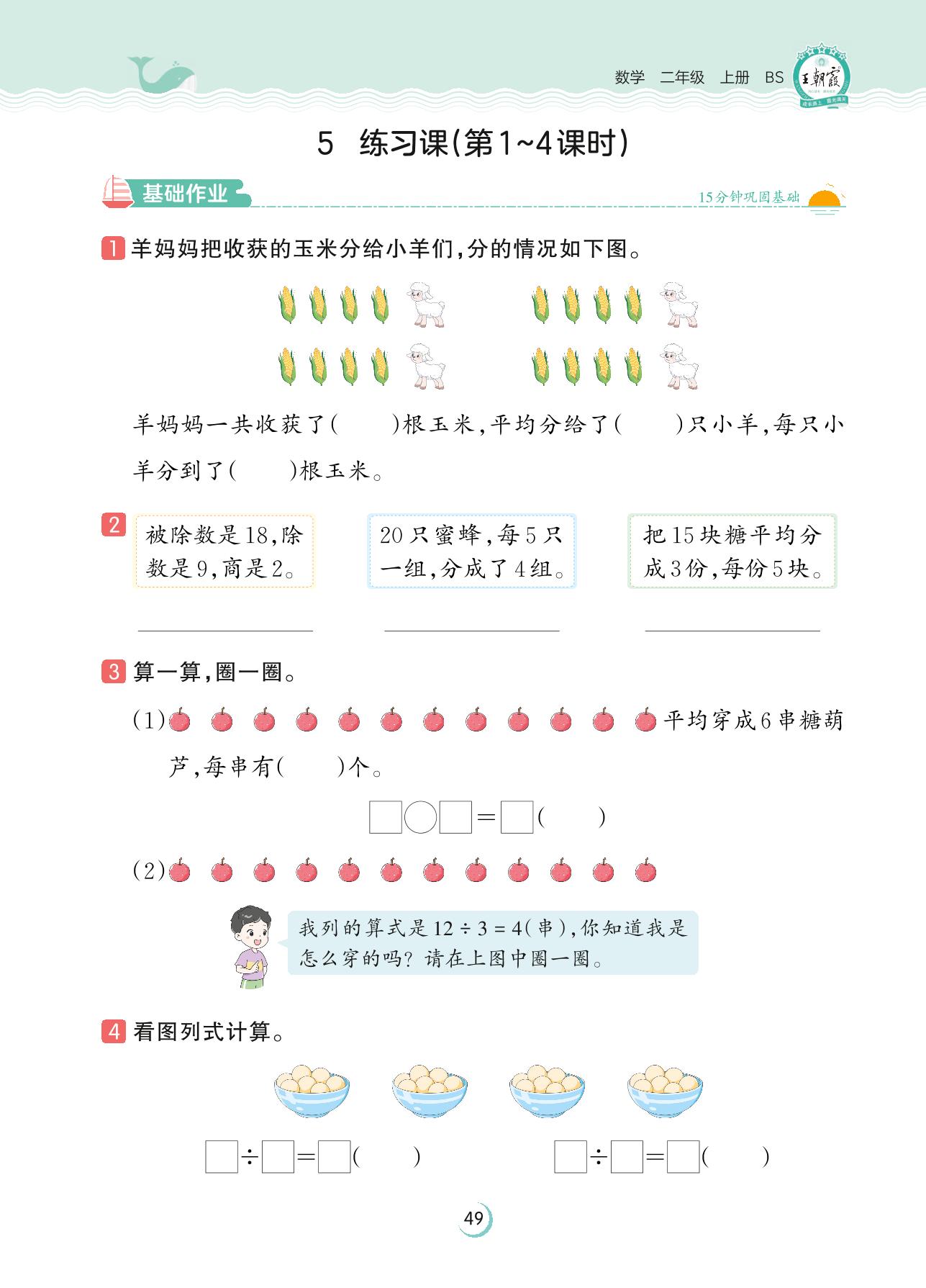 2023上册二年级数学北师版 第七单元 分一分与除法——5 练习课(第1~4课时)