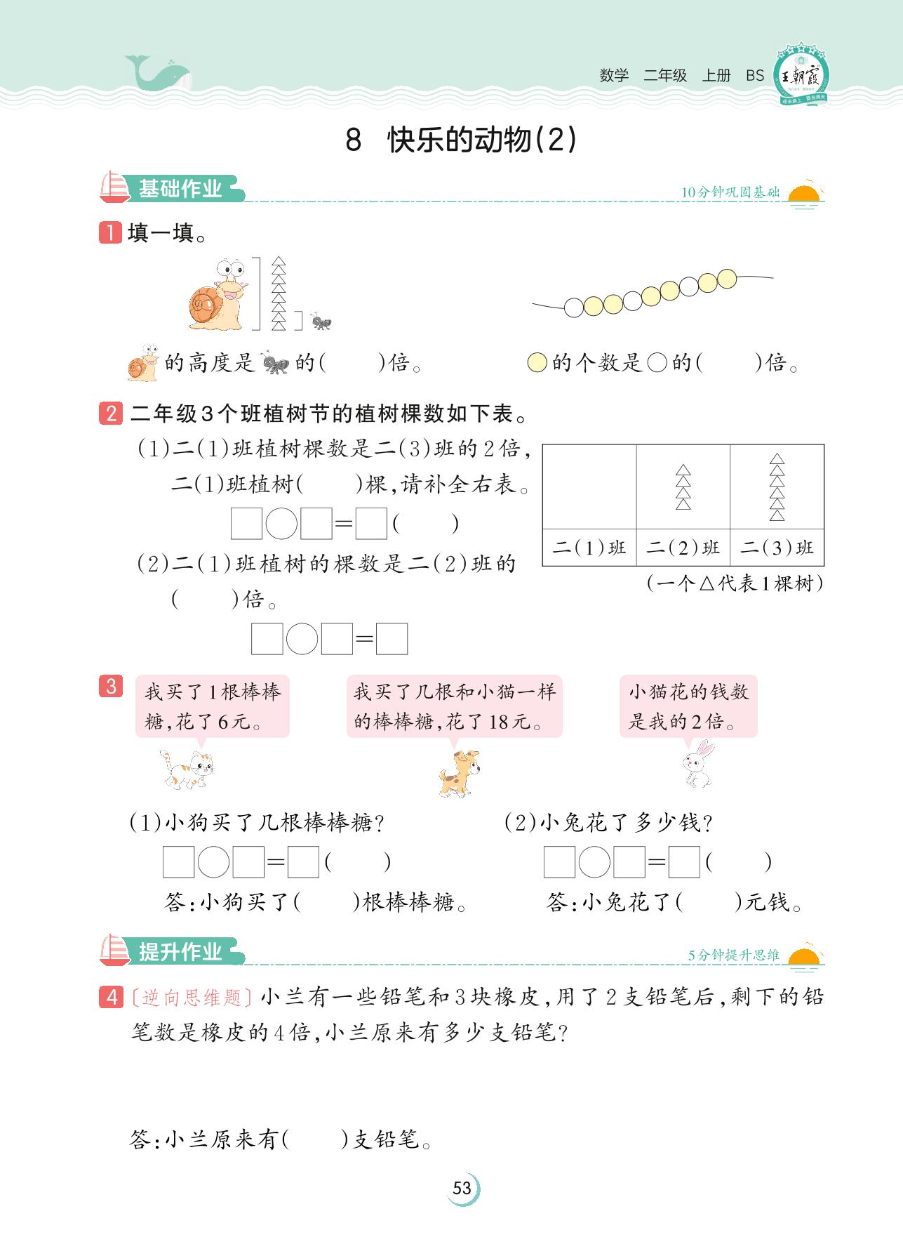 2023上册二年级数学北师版 第七单元 分一分与除法——8 快乐的动物(2)