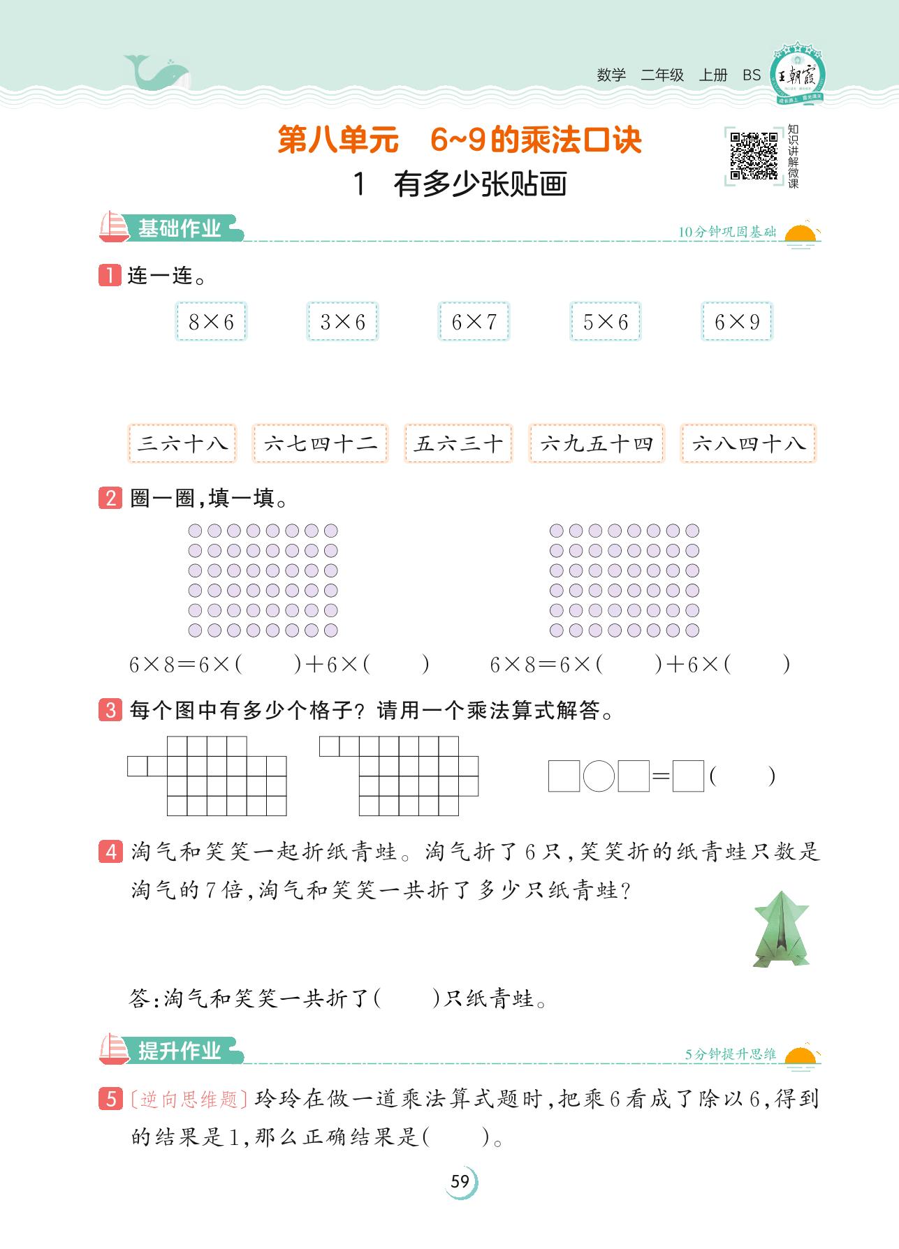 2023上册二年级数学北师版 第八单元 6~9的乘法口诀——1 有多少张贴画
