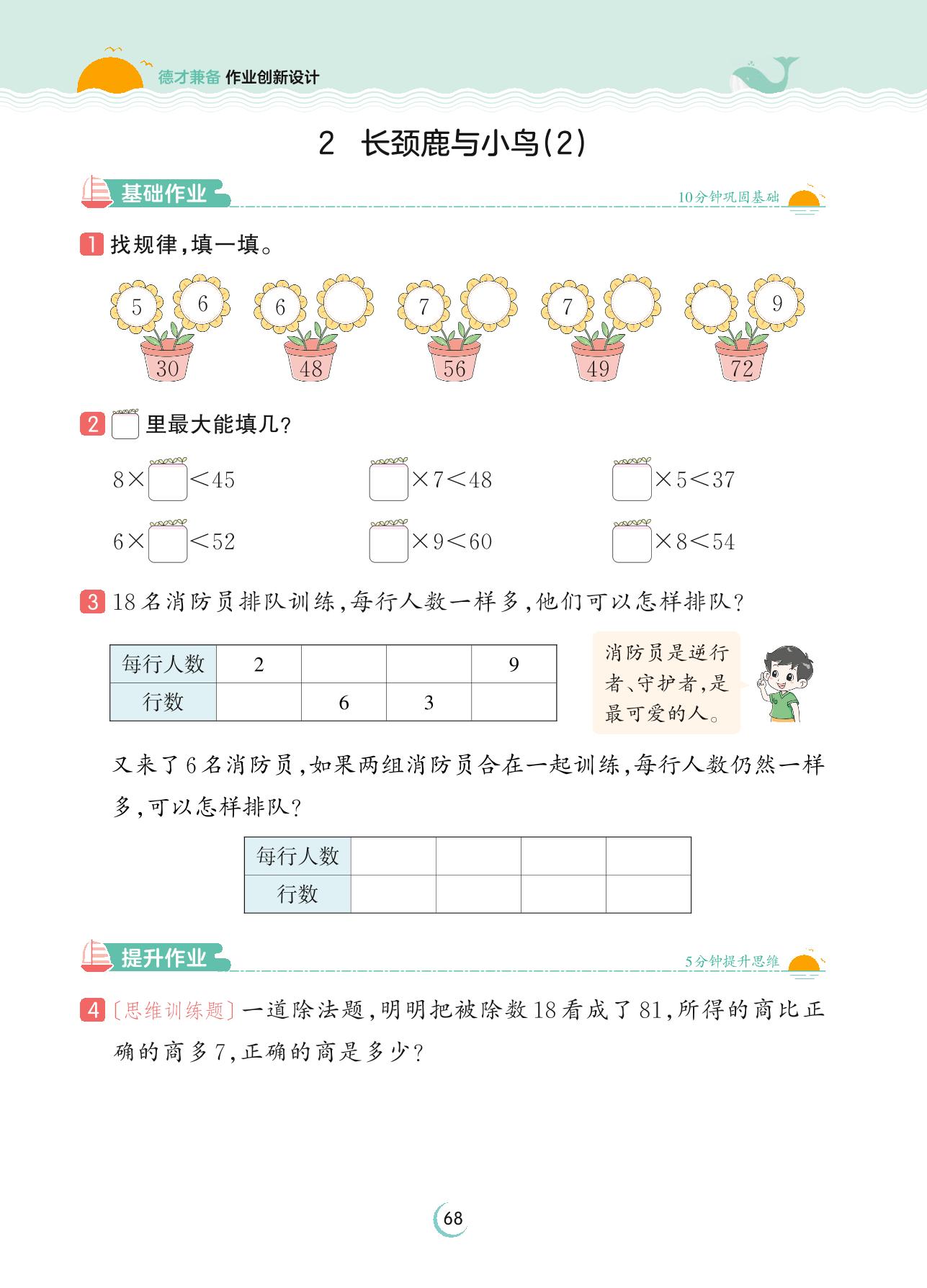 2023上册二年级数学北师版 第九单元 除法——2 长颈鹿与小鸟(2)