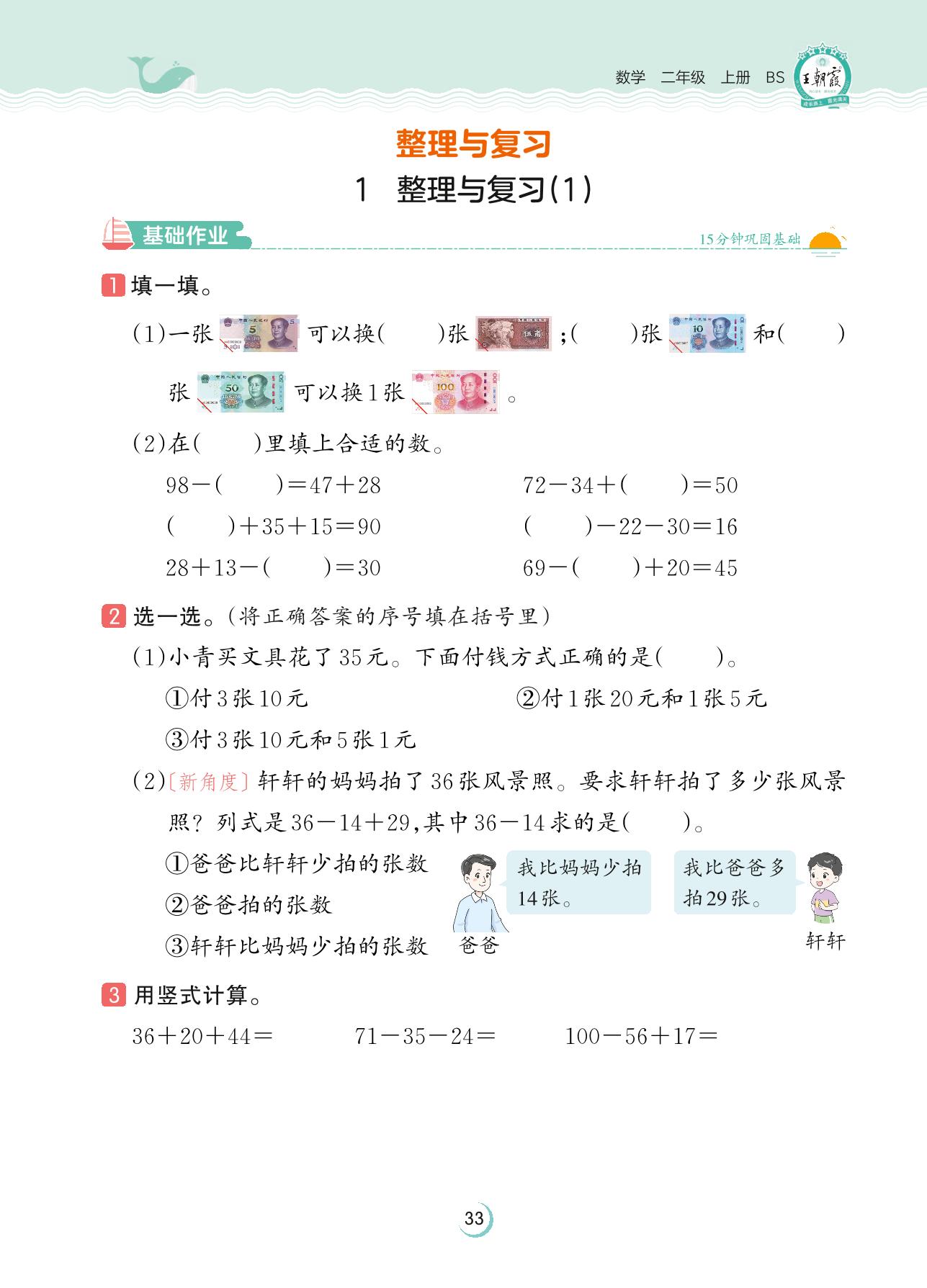 2023上册二年级数学北师版 整理与复习 ——1 整理与复习(1)