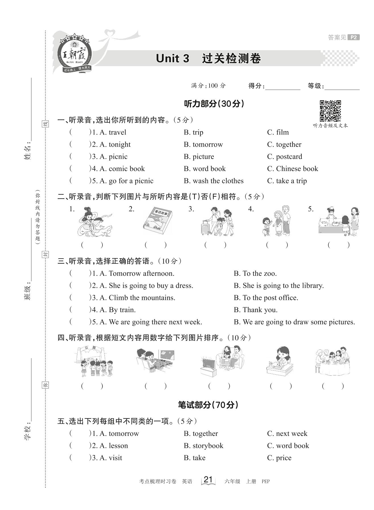 2023上册六年级英语人教PEP版 Unit 3 过关检测卷