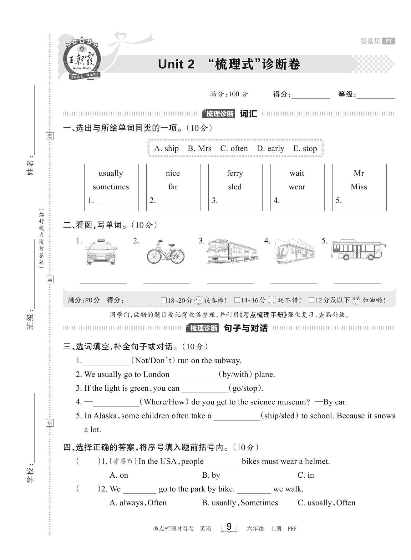 2023上册六年级英语人教PEP版 Unit 2 “梳理式”诊断卷
