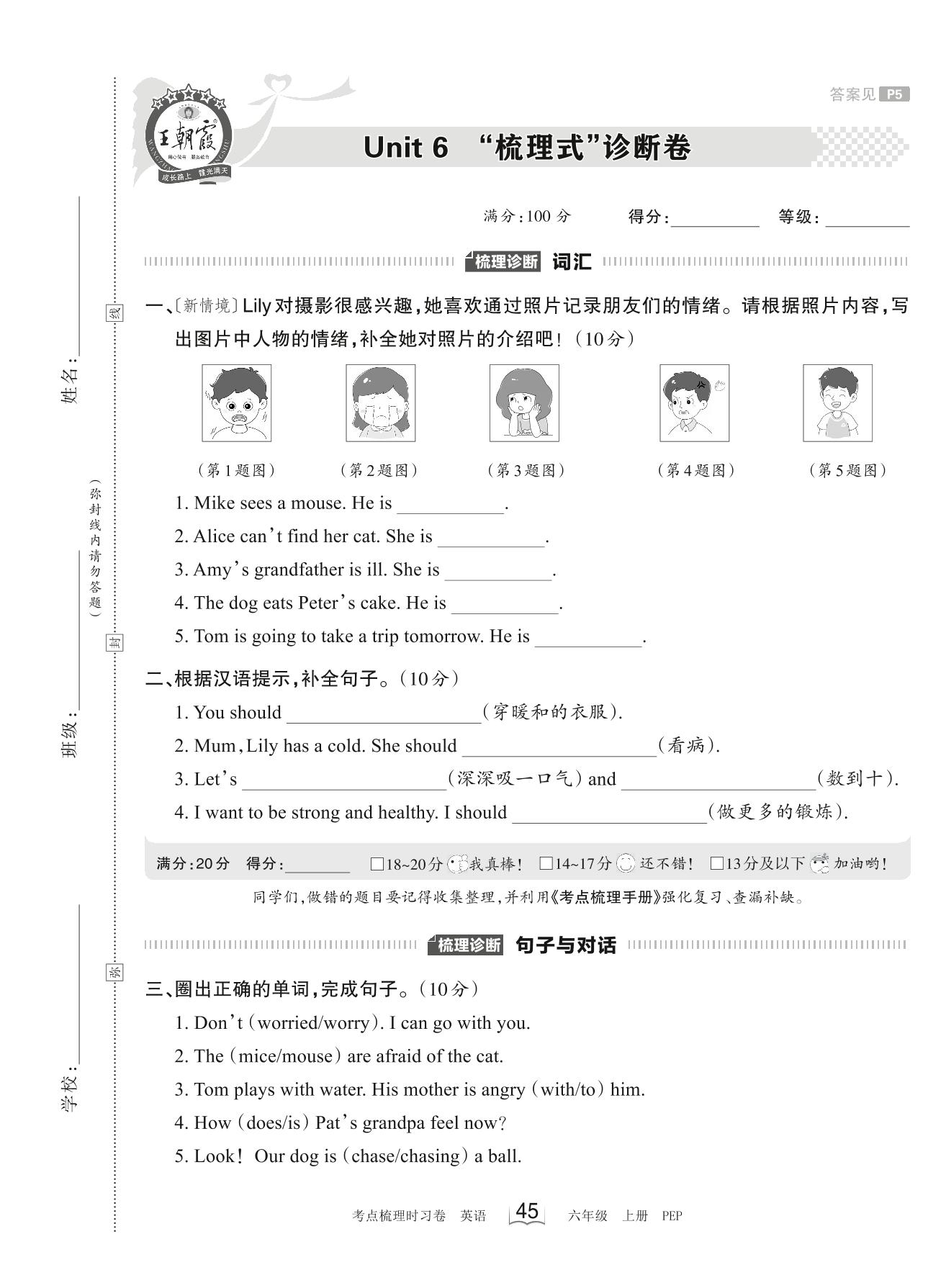 2023上册六年级英语人教PEP版 Unit 6 “梳理式”诊断卷