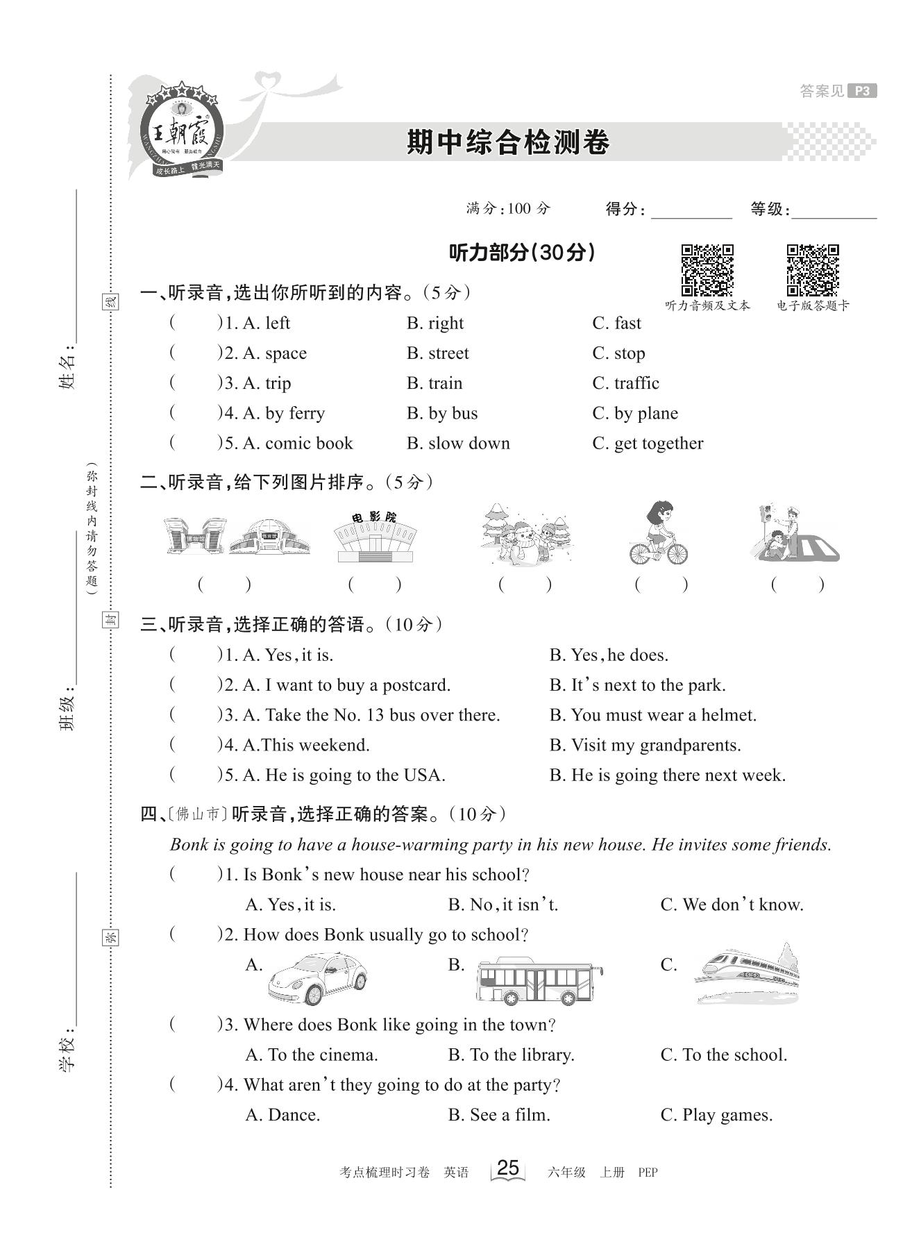 2023上册六年级英语人教PEP版 期中综合检测卷