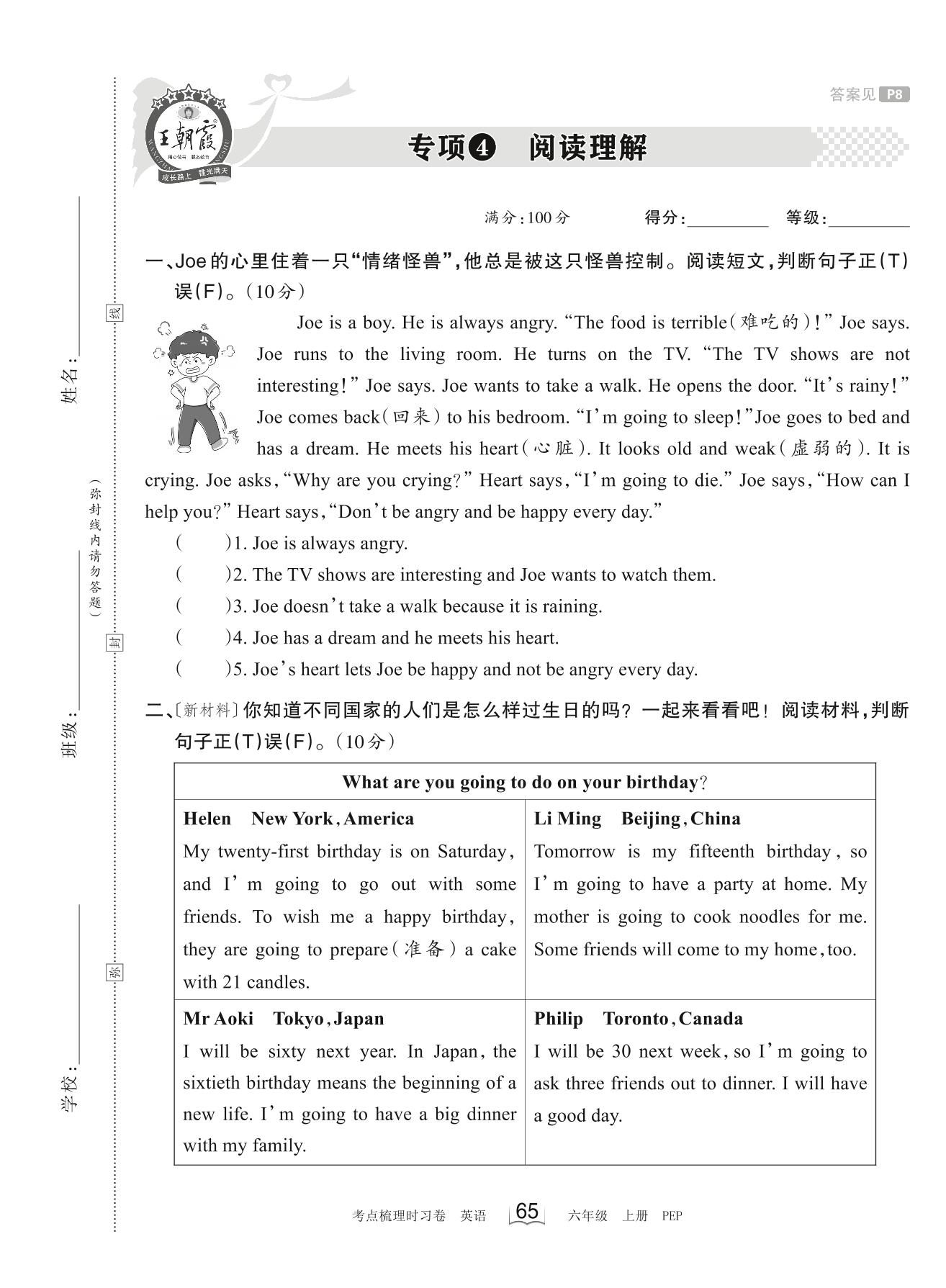 2023上册六年级英语人教PEP版 专项4 阅读理解