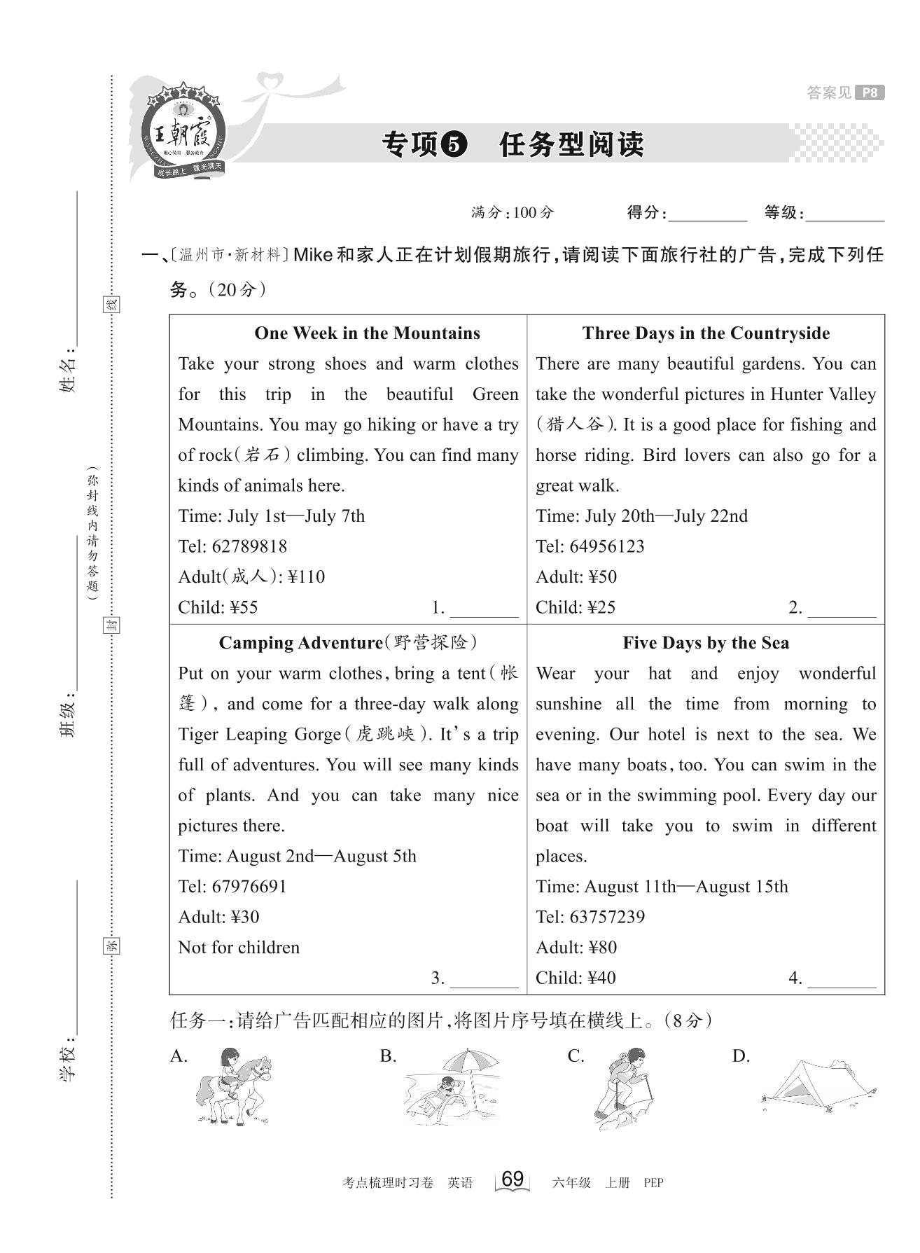 2023上册六年级英语人教PEP版 专项5 任务型阅读