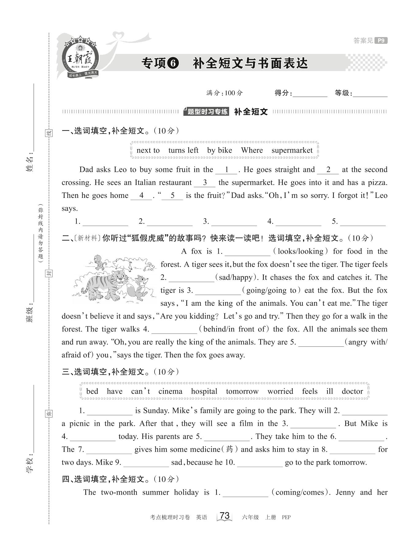 2023上册六年级英语人教PEP版 专项6 补全短文与书面表达