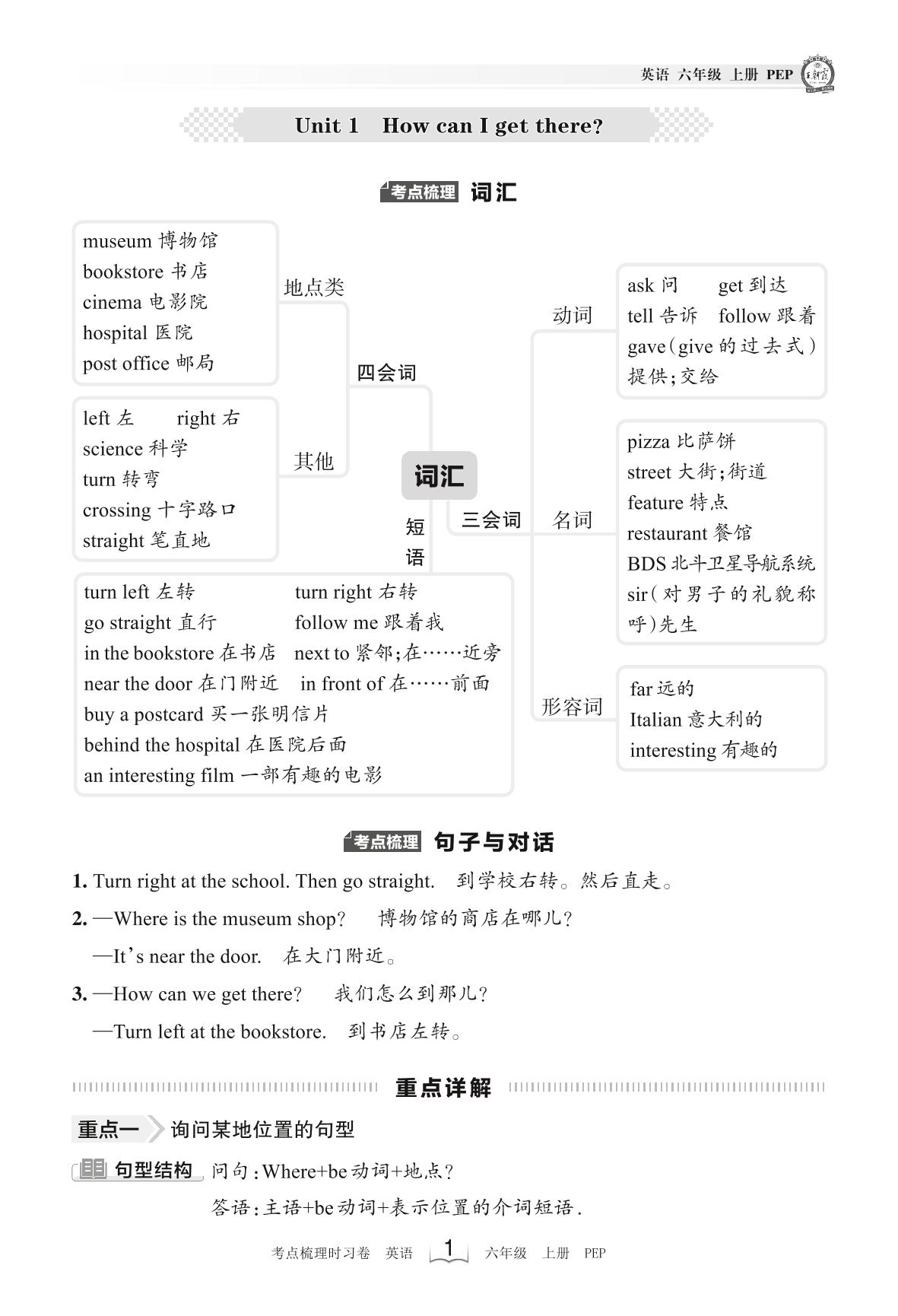 2023上册六年级英语人教PEP版 考点梳理手册——Unit 1 How can I get there?