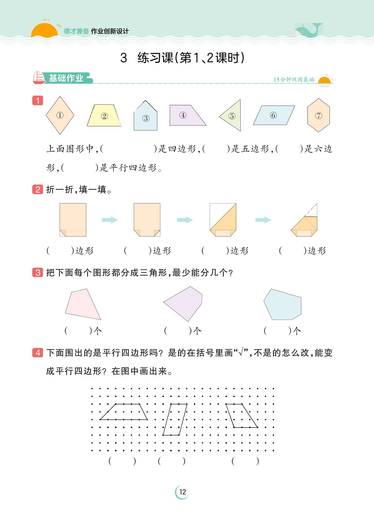 2023上册二年级数学苏教版 第二单元 平行四边形的初步认识——3 练习课(第1、2课时)