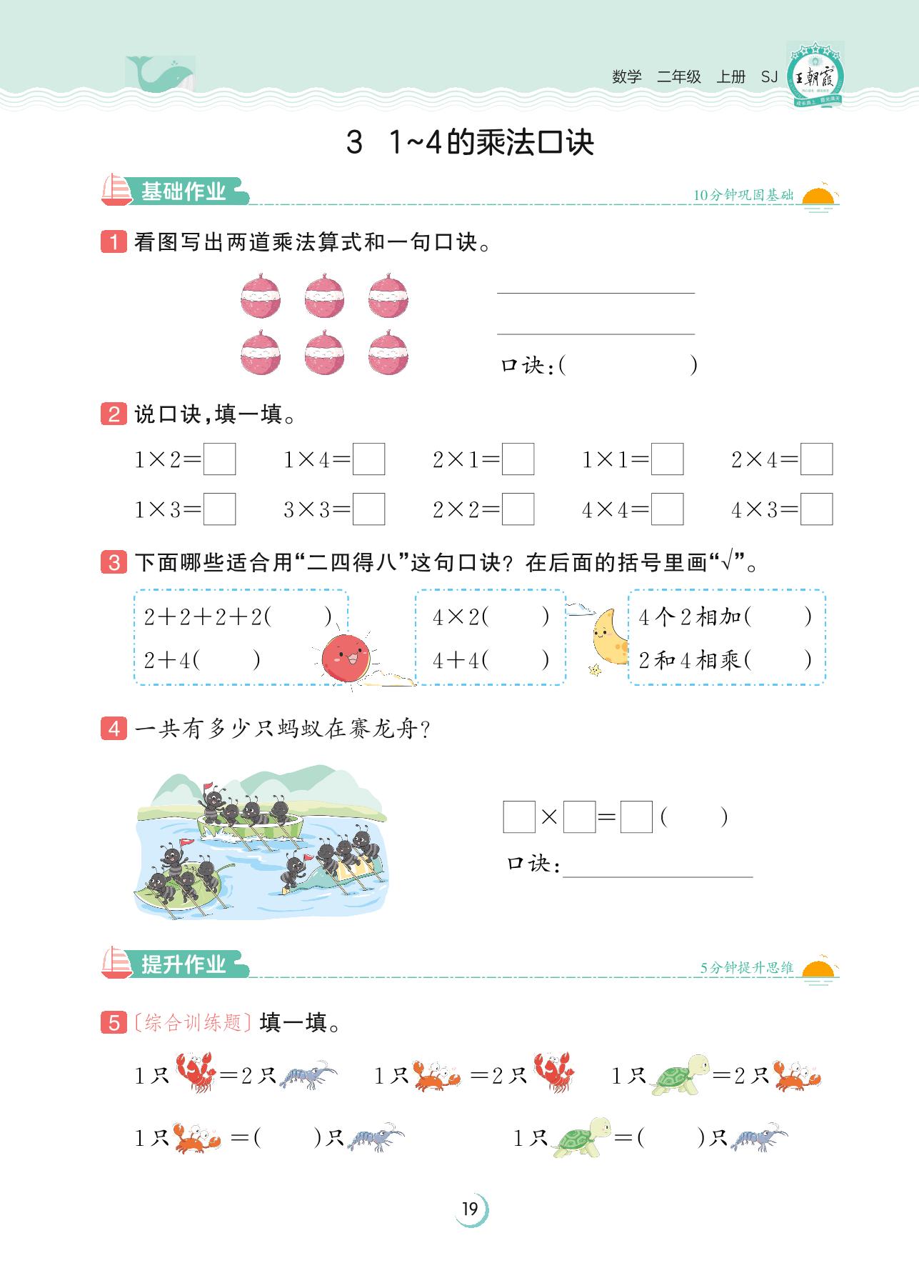 2023上册二年级数学苏教版 第三单元 表内乘法(一)——3 1~4的乘法口诀