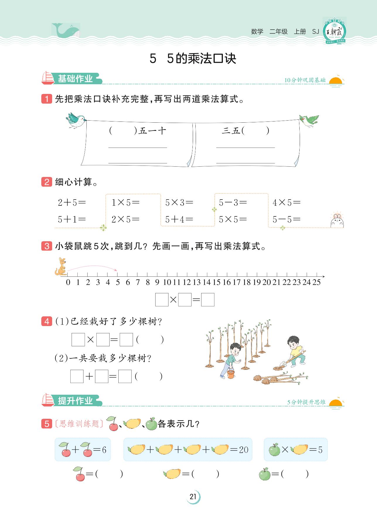 2023上册二年级数学苏教版 第三单元 表内乘法(一)——5 5的乘法口诀