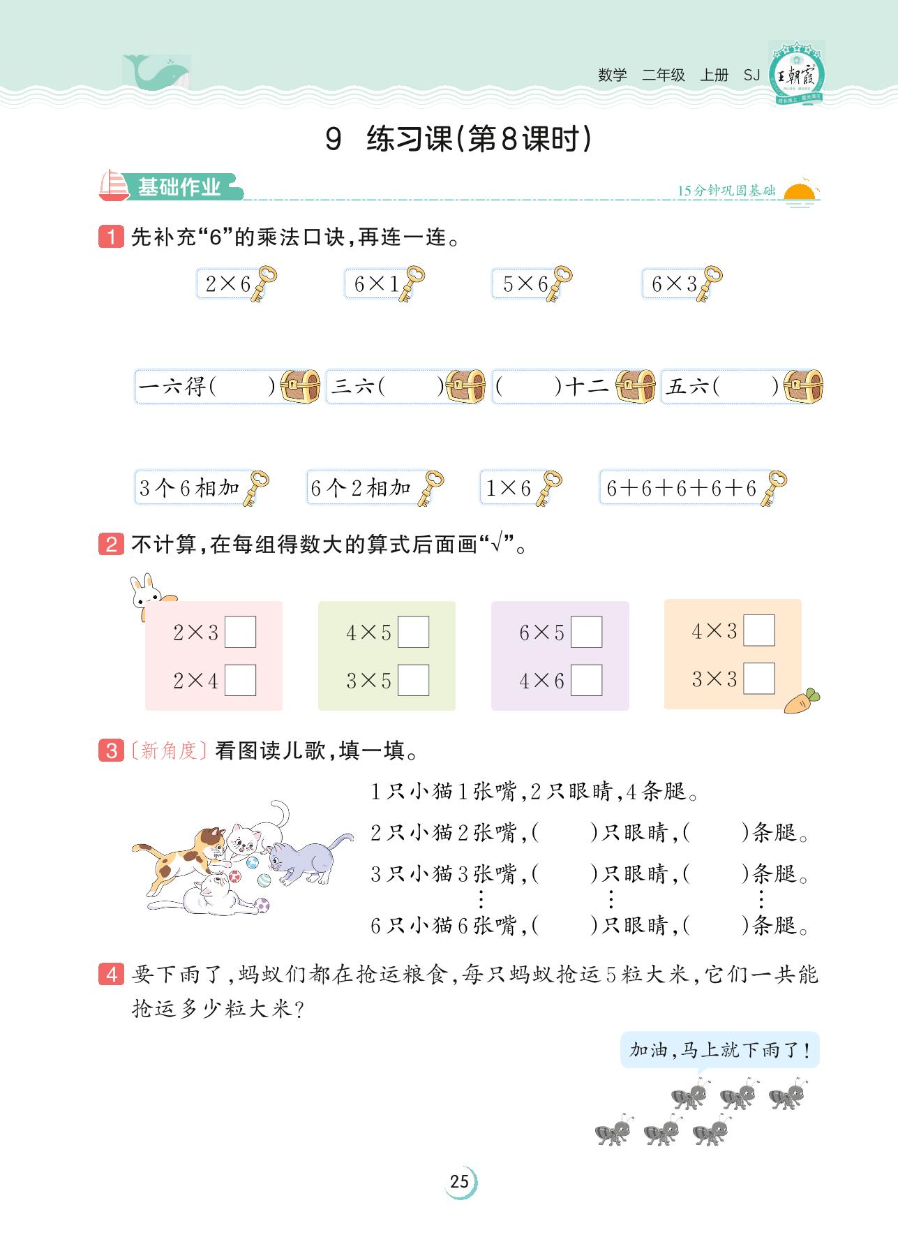 2023上册二年级数学苏教版 第三单元 表内乘法(一)——9 练习课(第8课时)