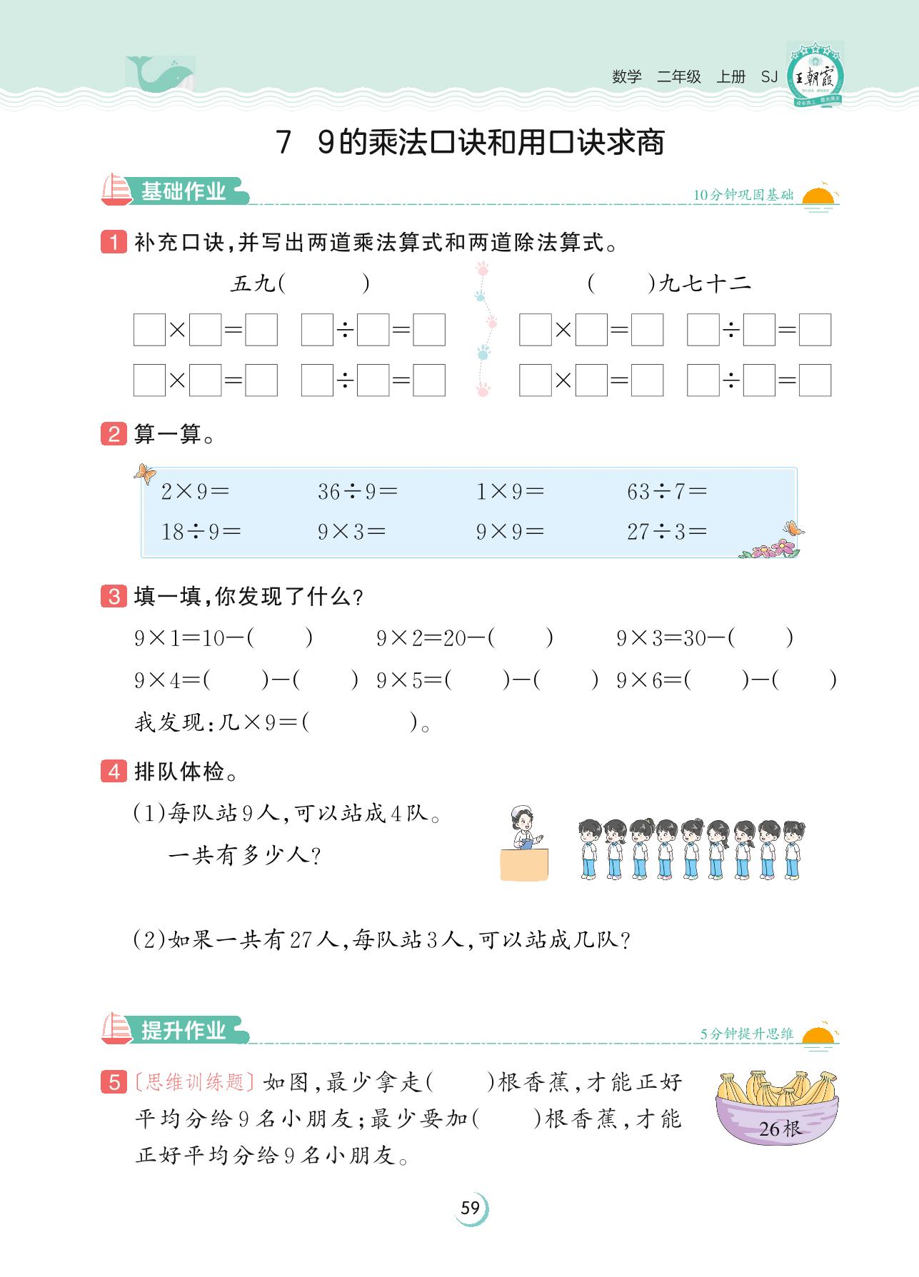 2023上册二年级数学苏教版 第六单元 表内乘法和表内除法(二)——7 9的乘法口诀和用口诀求商