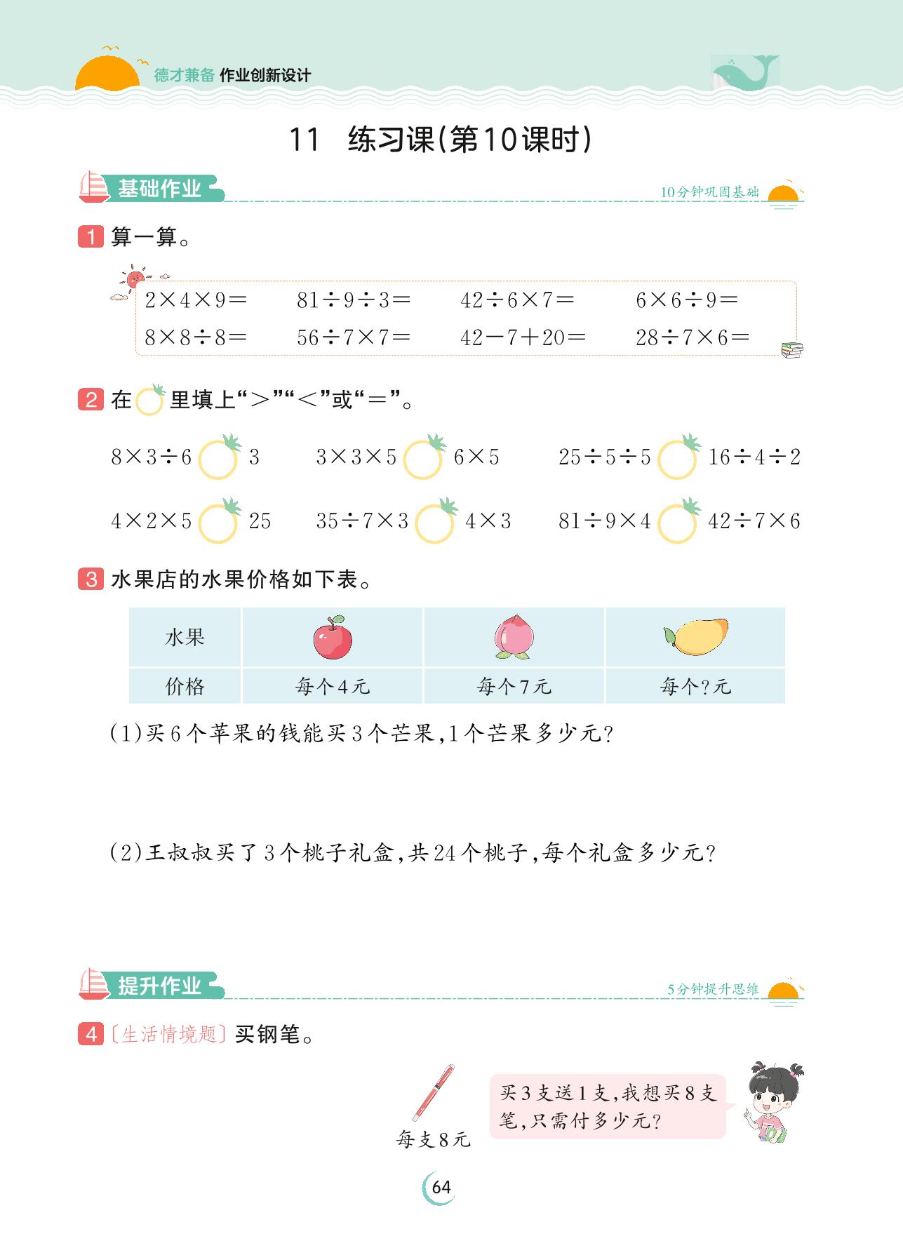2023上册二年级数学苏教版 第六单元 表内乘法和表内除法(二)——11 练习课(第10课时)