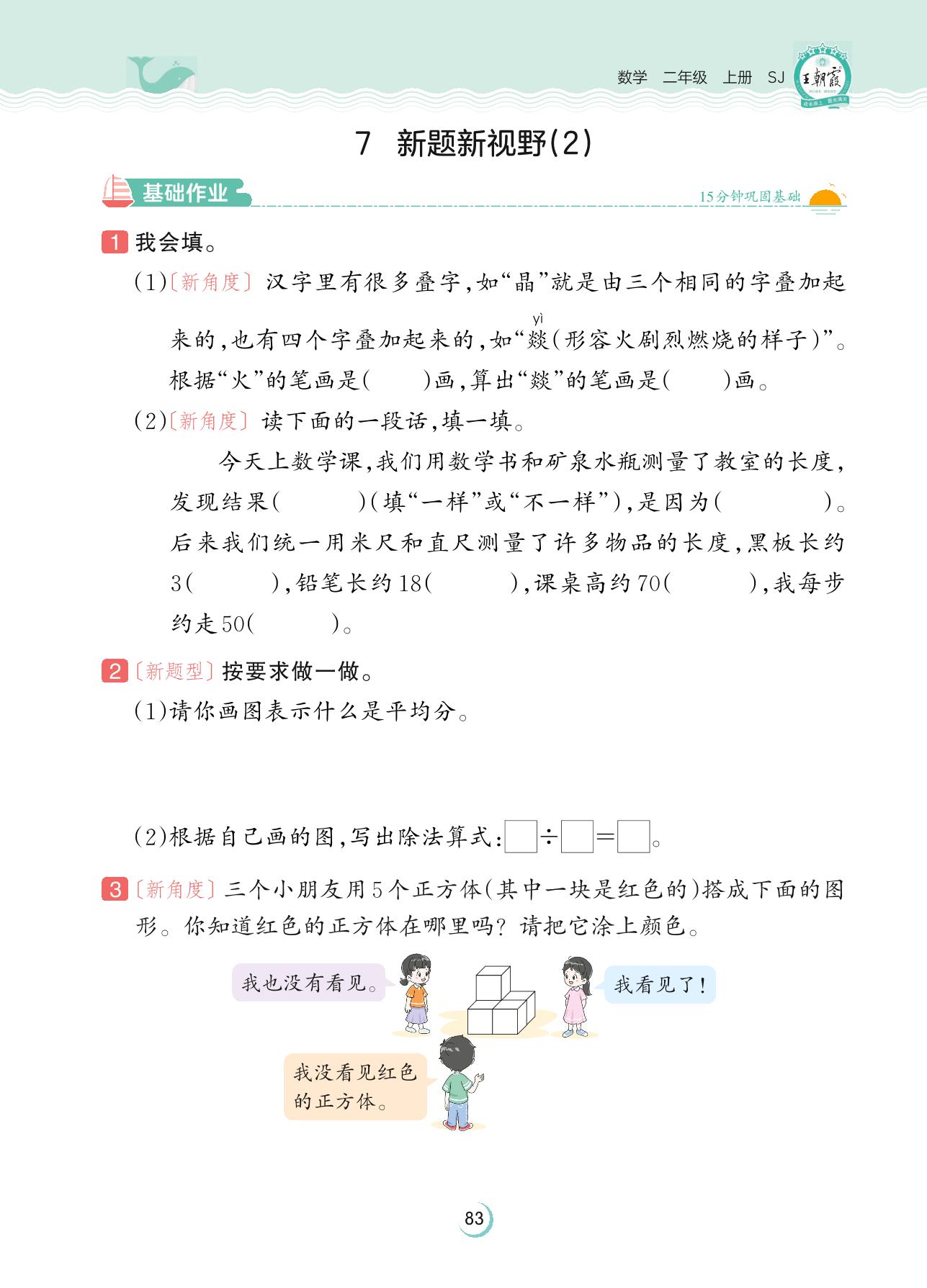 2023上册二年级数学苏教版 第八单元 期末复习——7 新题新视野(2)
