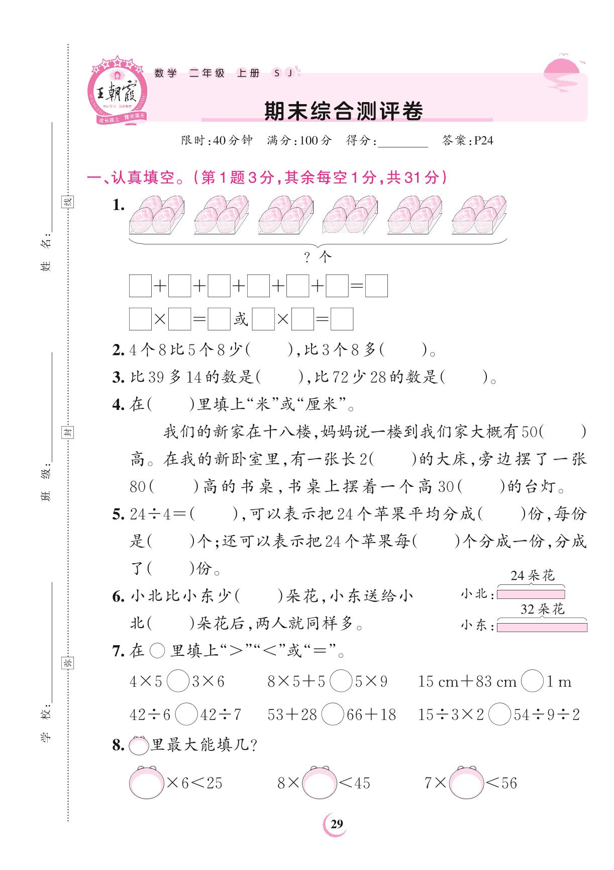 二年级数学苏教版上册期末卷