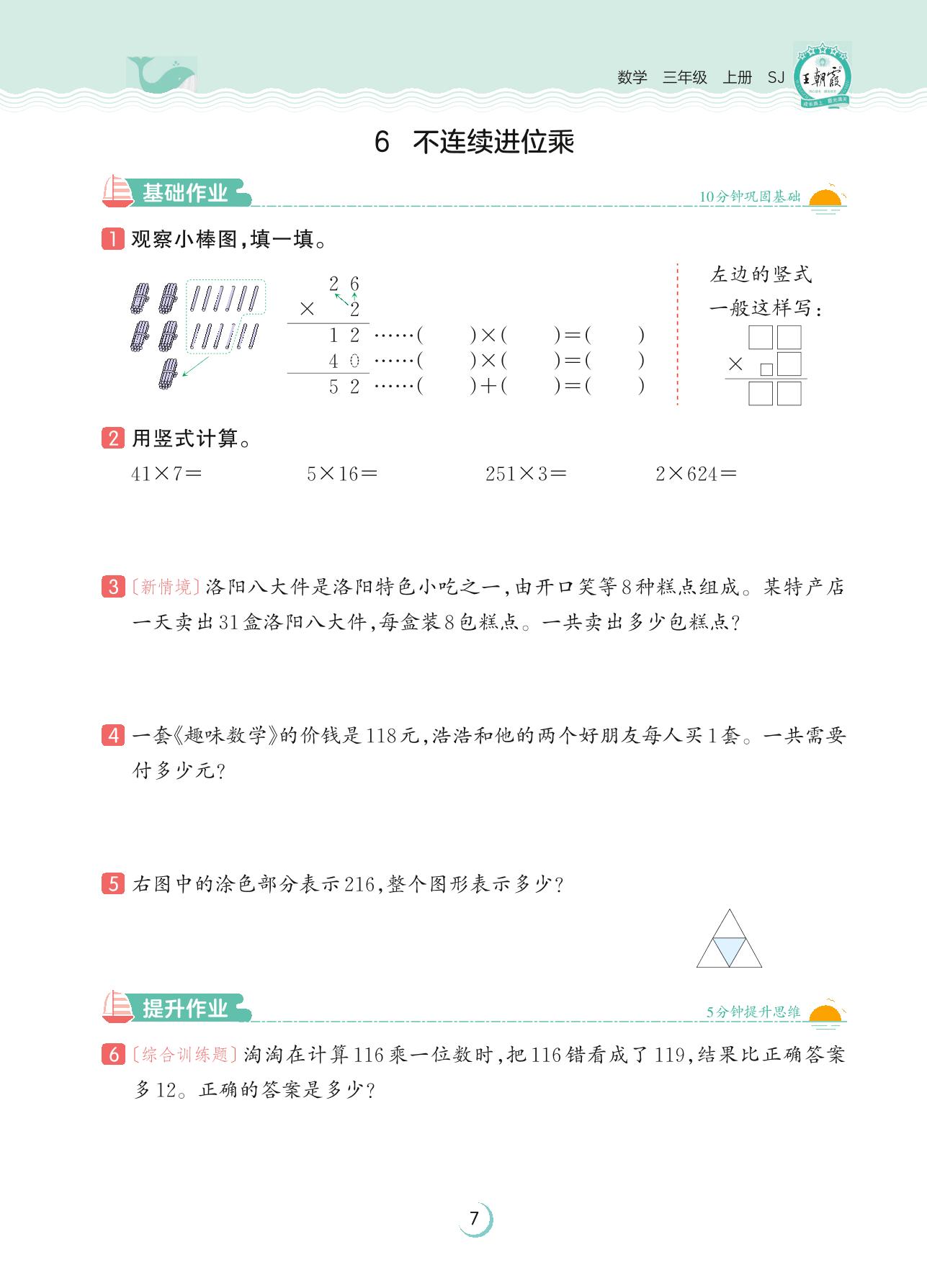 2023上册三年级数学苏教版 第一单元 两、三位数乘一位数——6 不连续进位乘
