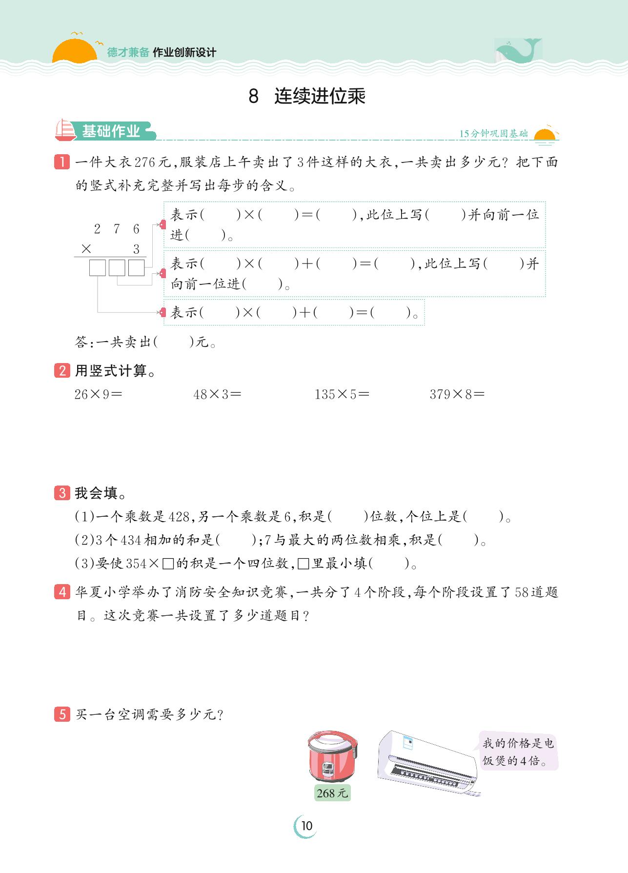 2023上册三年级数学苏教版 第一单元 两、三位数乘一位数——8 连续进位乘