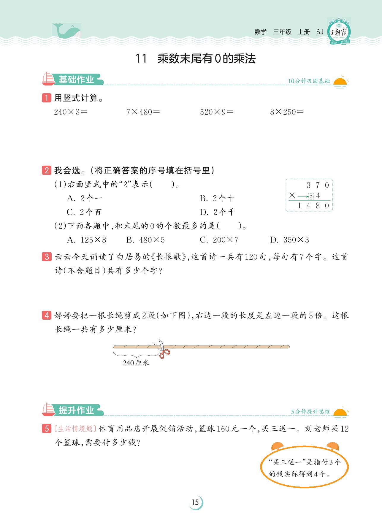 2023上册三年级数学苏教版 第一单元 两、三位数乘一位数——11 乘数末尾有0的乘法