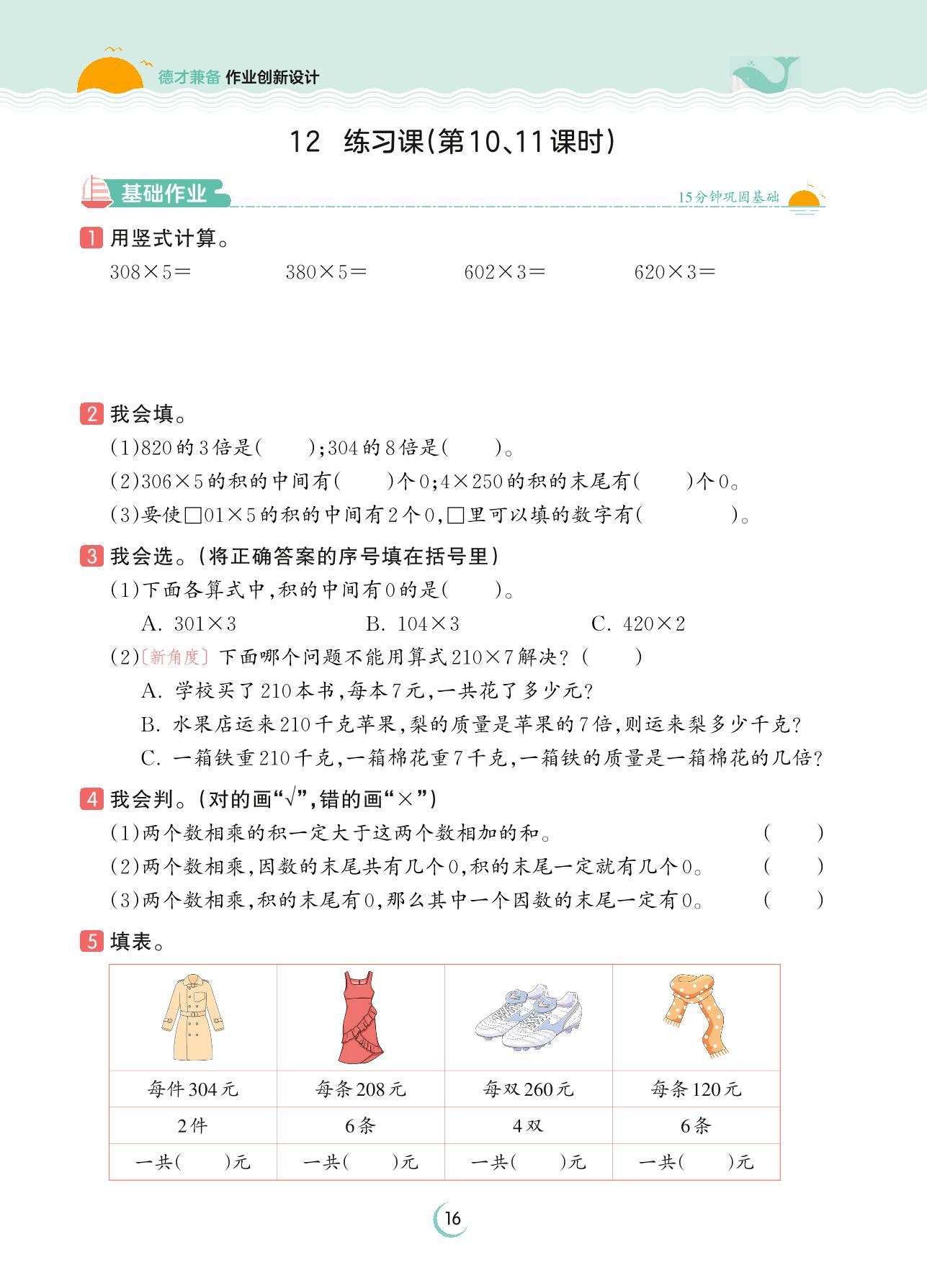 2023上册三年级数学苏教版 第一单元 两、三位数乘一位数——12 练习课(第10、11课时)