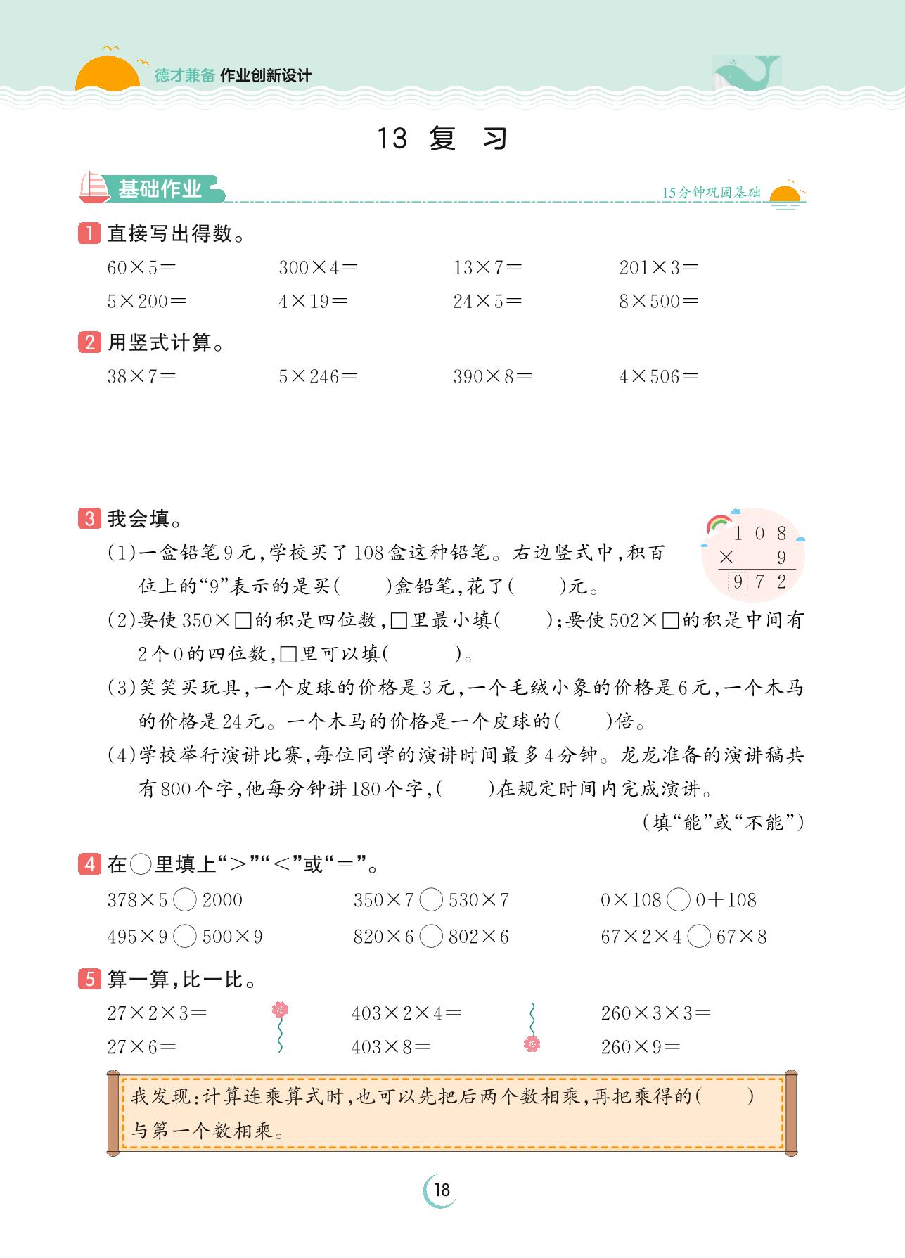 2023上册三年级数学苏教版 第一单元 两、三位数乘一位数——13 复习