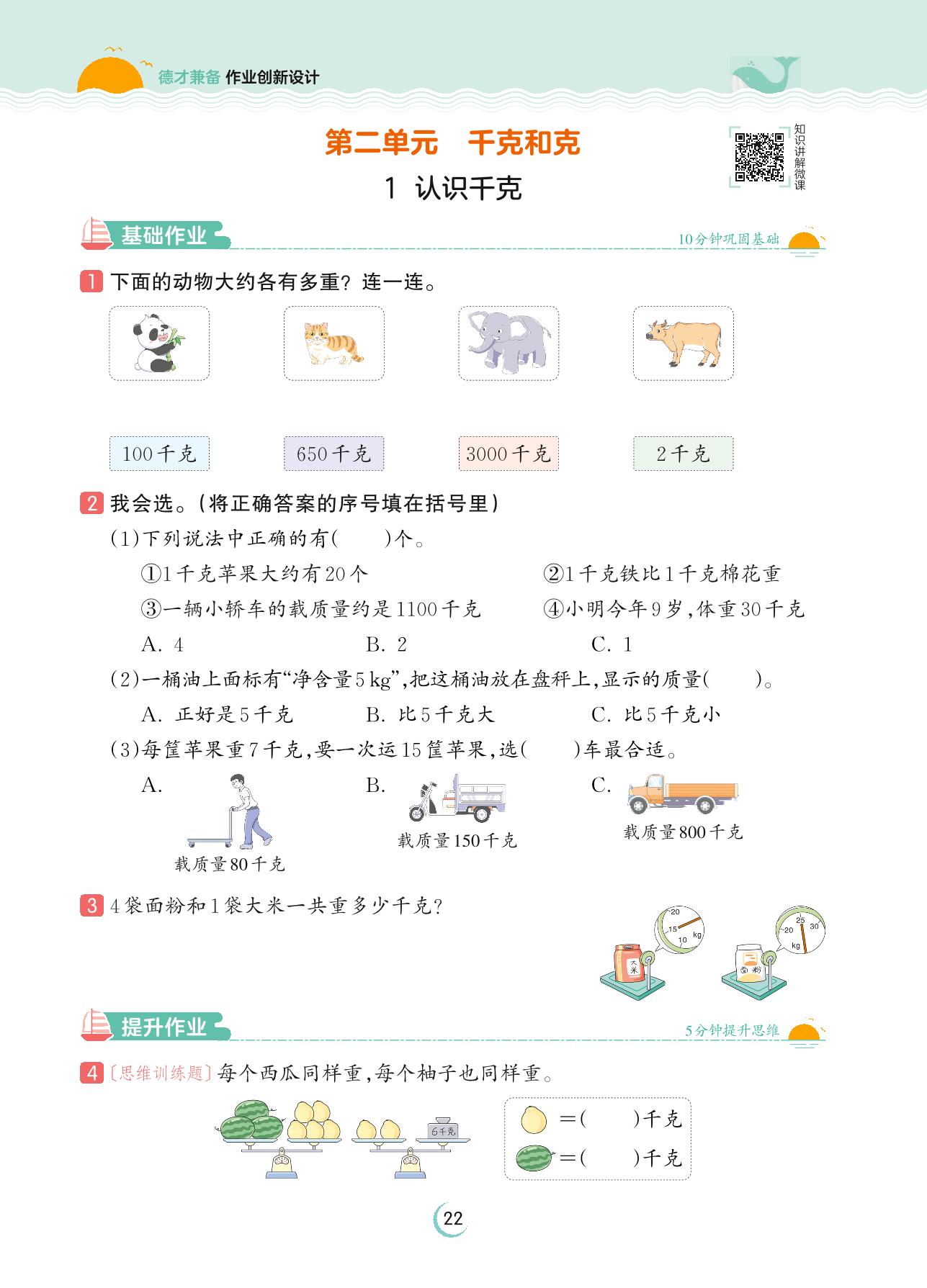 2023上册三年级数学苏教版 第二单元 千克和克——1 认识千克