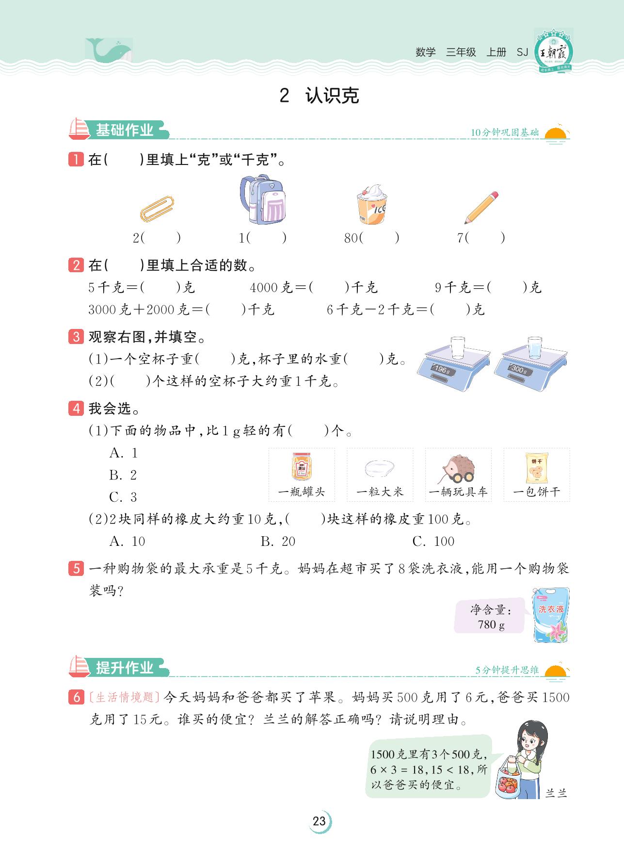2023上册三年级数学苏教版 第二单元 千克和克——2 认识克