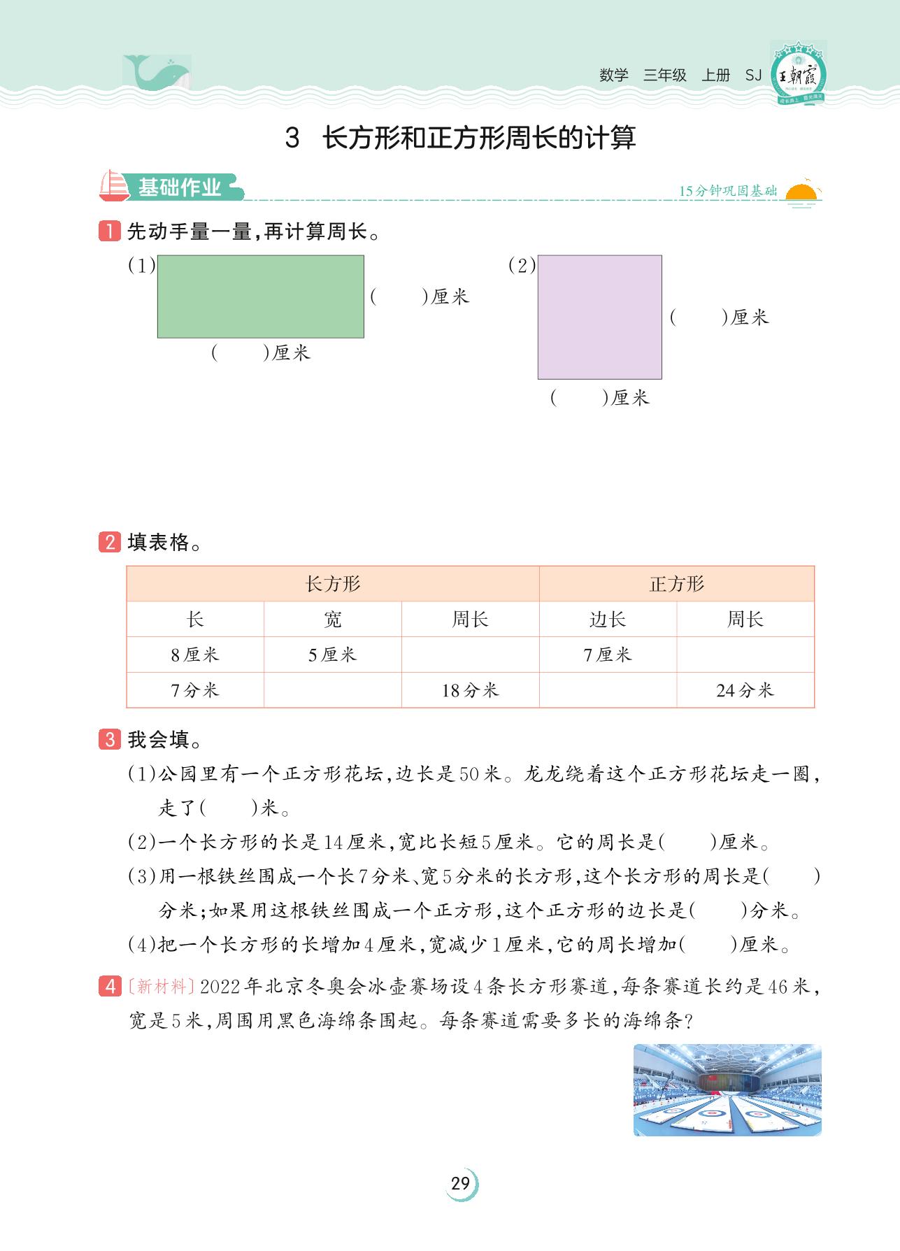 2023上册三年级数学苏教版 第三单元 长方形和正方形——3 长方形和正方形周长的计算