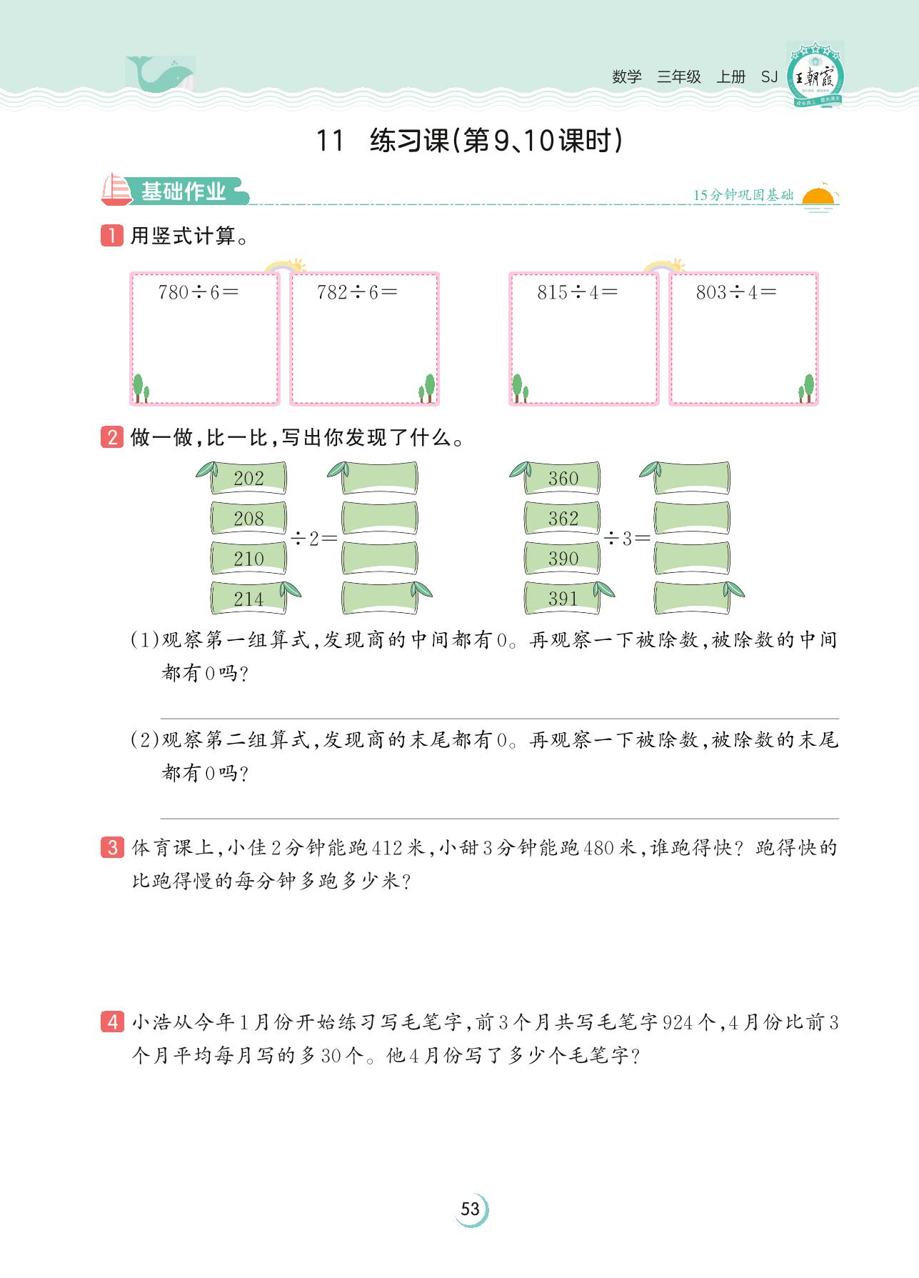 2023上册三年级数学苏教版 第四单元 两、三位数除以一位数——11 练习课(第9、10课时)