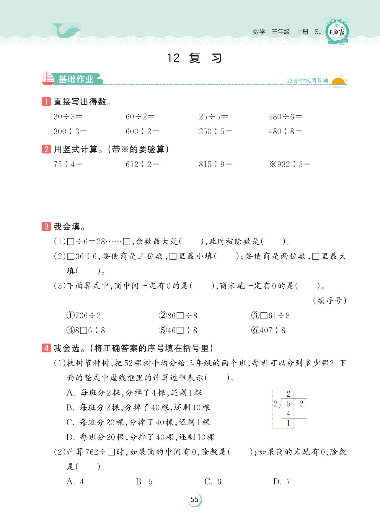 2023上册三年级数学苏教版 第四单元 两、三位数除以一位数——12 复习