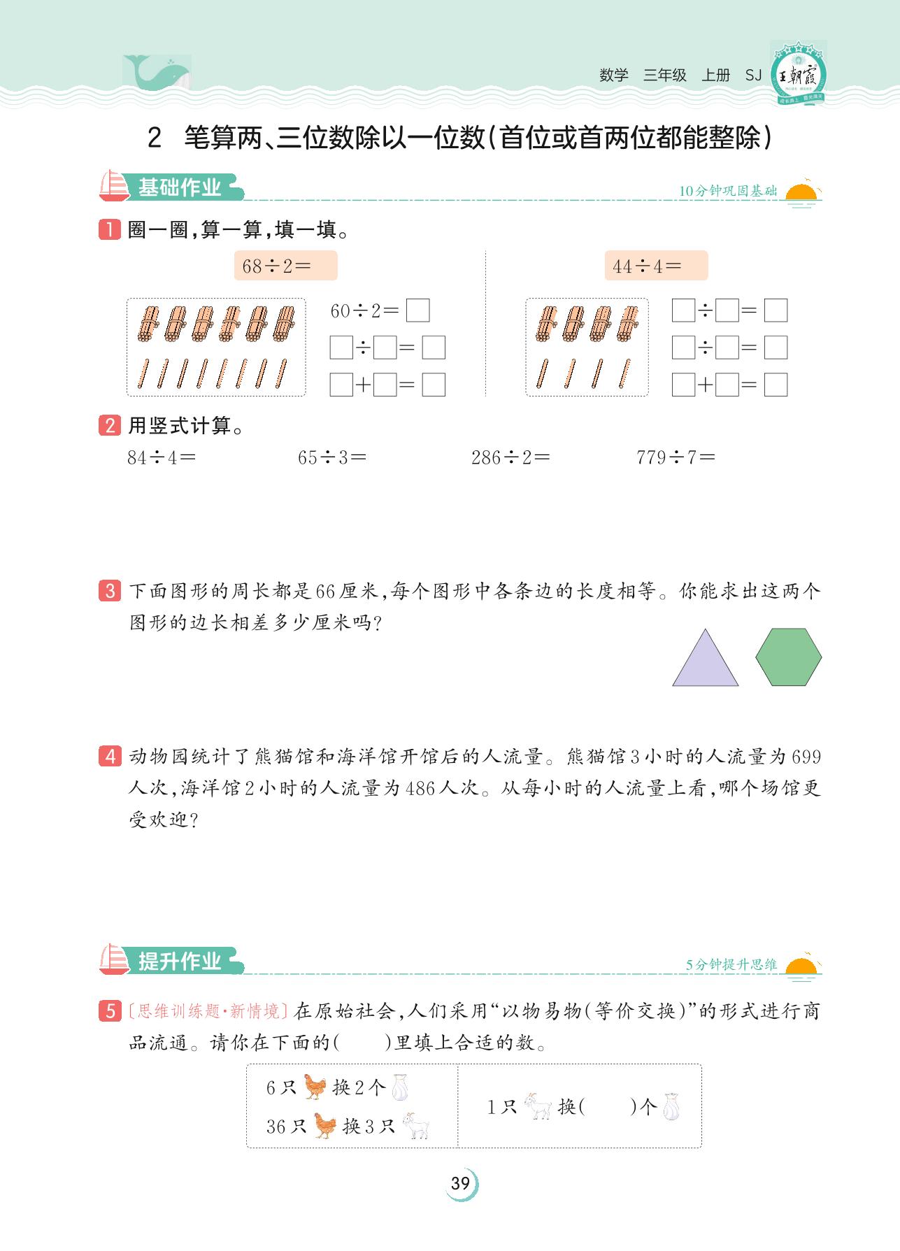 2023上册三年级数学苏教版 第四单元 两、三位数除以一位数——2 笔算两、三位数除以一位数(首位或首两位都能整除)