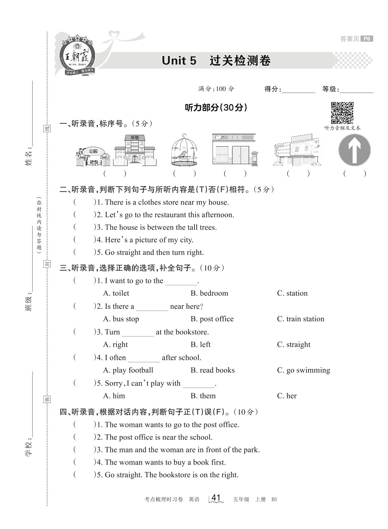 2023上册五年级英语北师版 Unit 5 过关检测卷