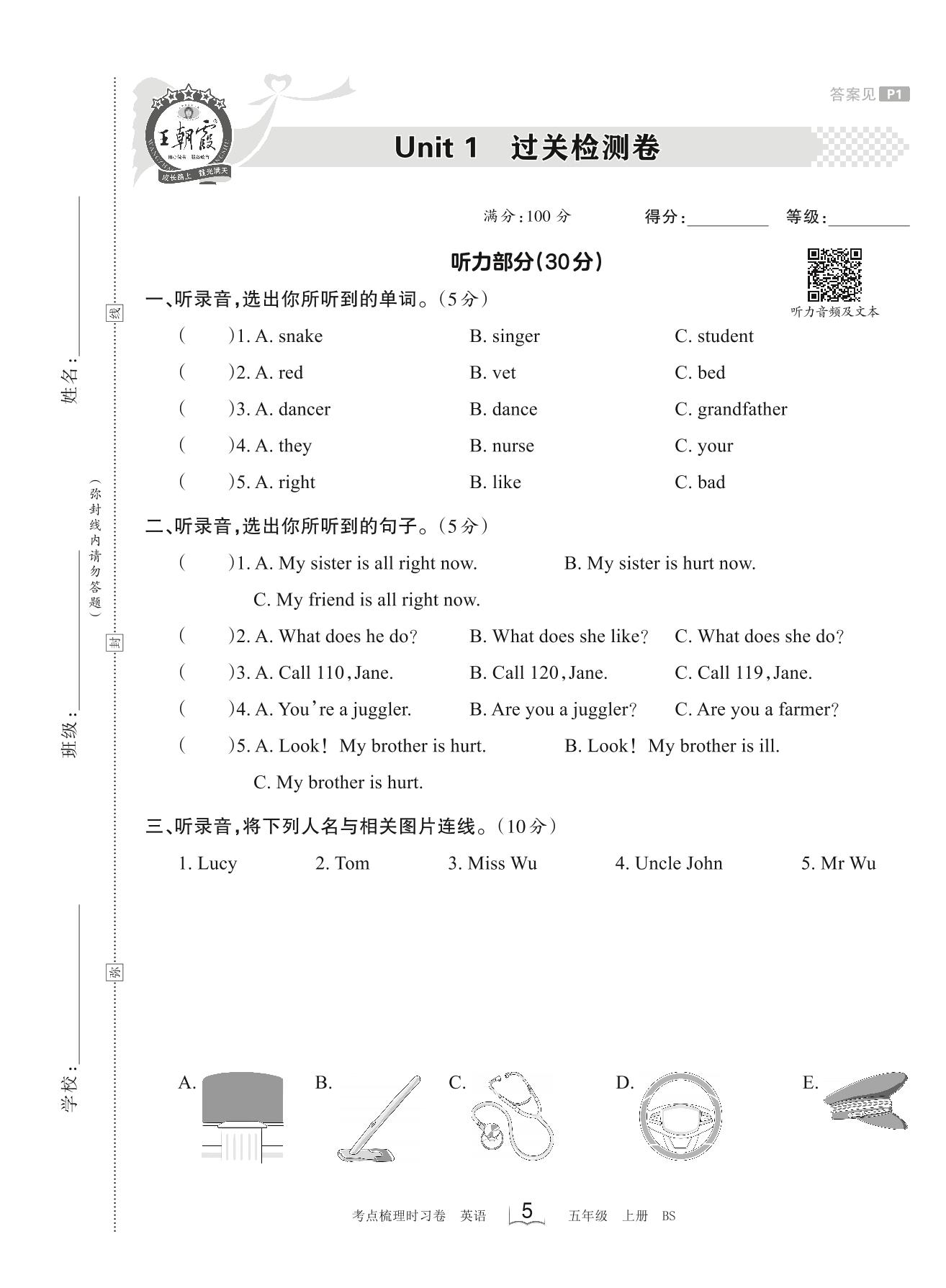 2023上册五年级英语北师版 Unit 1 过关检测卷