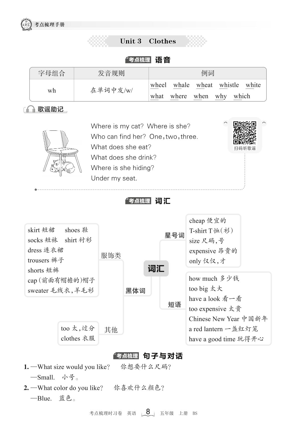 2023上册五年级英语北师版 考点梳理手册——Unit 3 Clothes