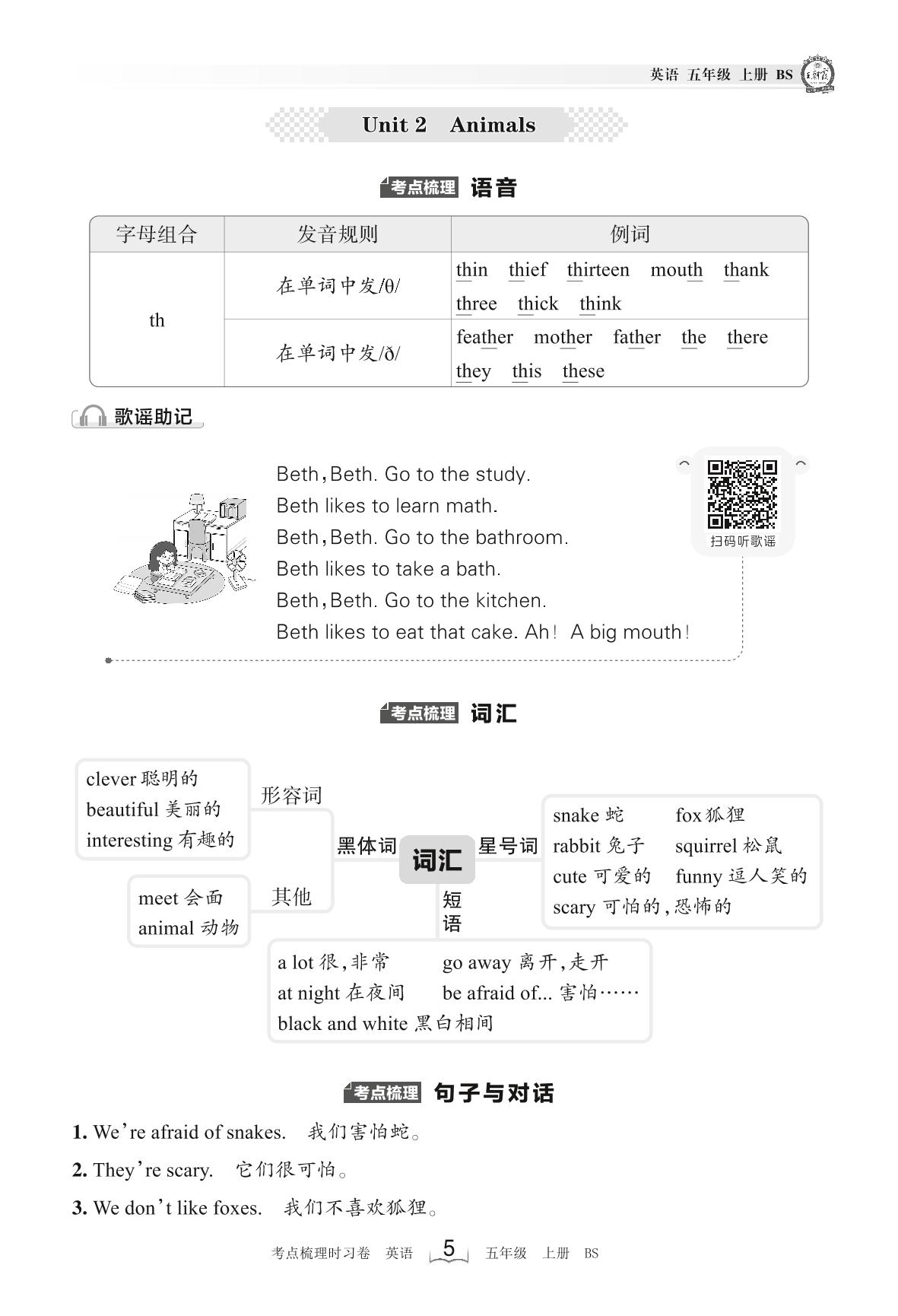 2023上册五年级英语北师版 考点梳理手册——Unit 2 Animals