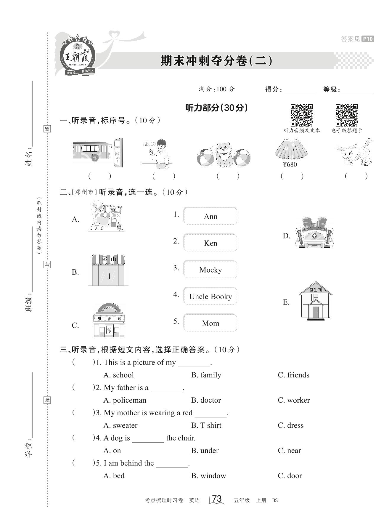 2023上册五年级英语北师版 期末冲刺夺分卷(二)